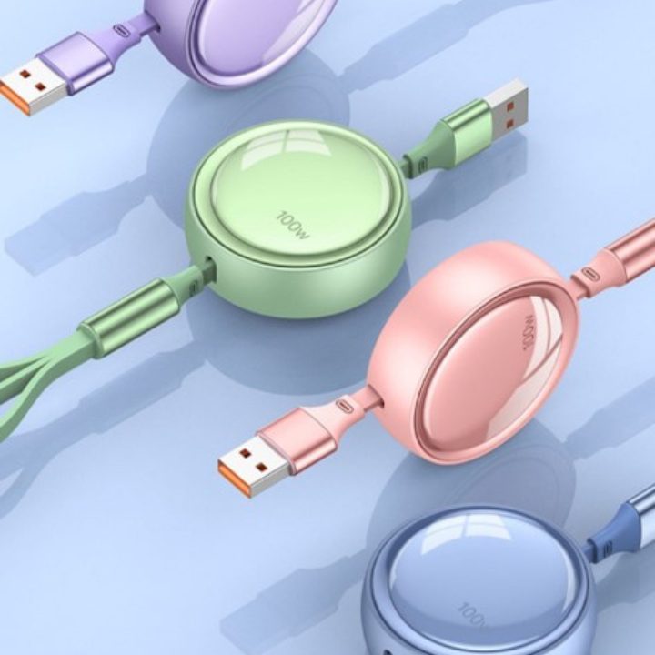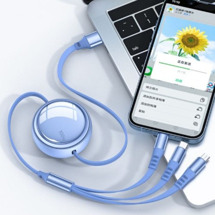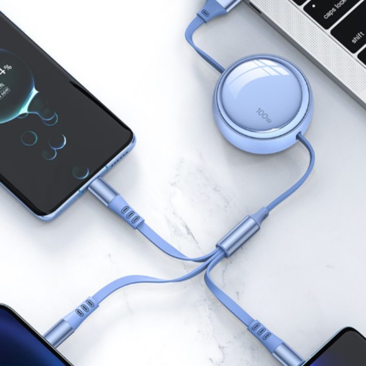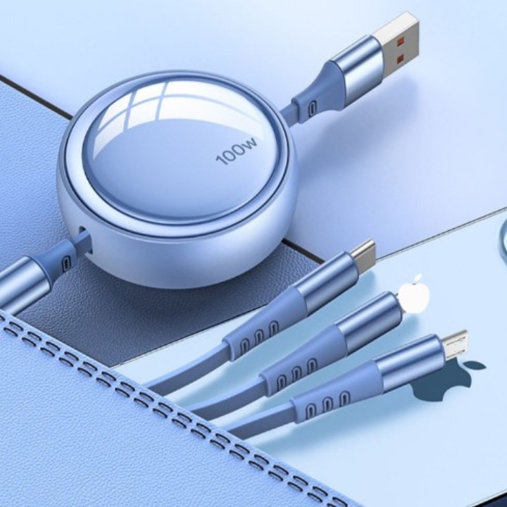 100 watt retractable 3 in 1 charging cable