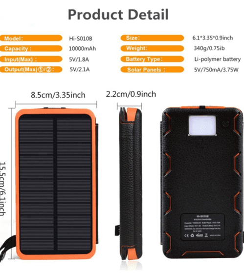 10000mah solar handy powerbank