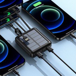 • Two ways of charging: Has two options to charge the powerbank: Solar energy or USB power source