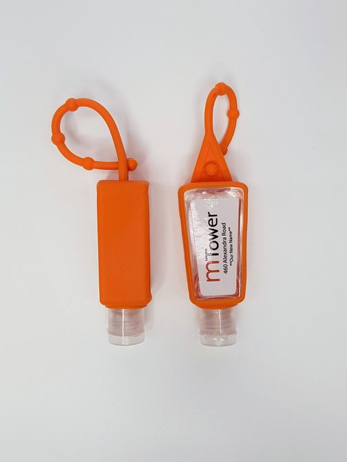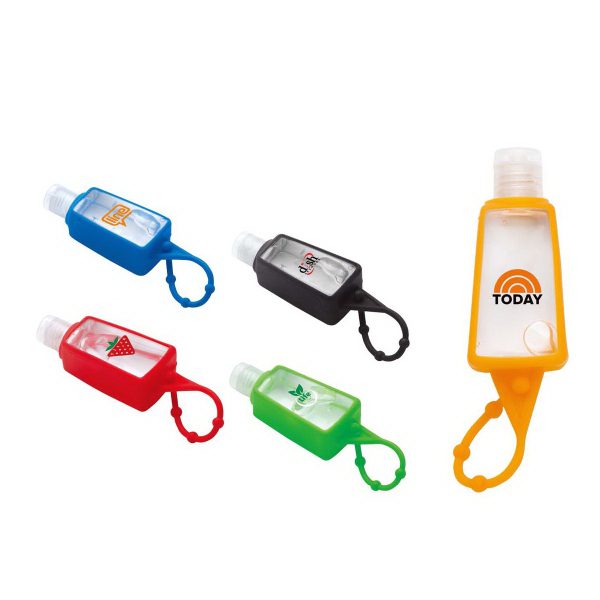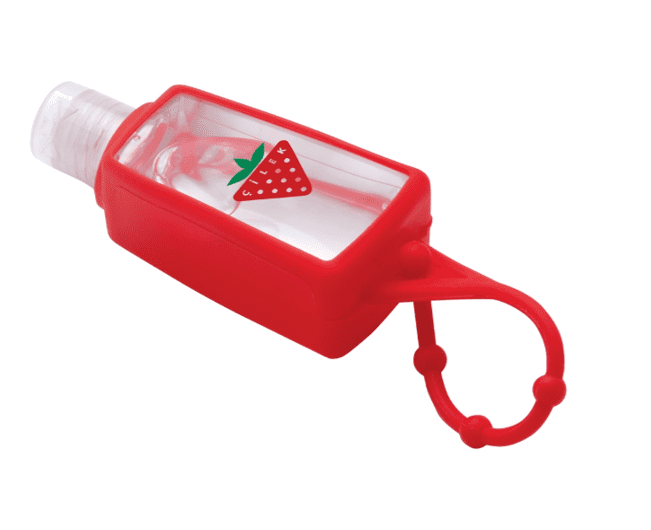 - Travel-sized bottle is wrapped in a silicone covering that can easily be attached to key rings, purses, and more.