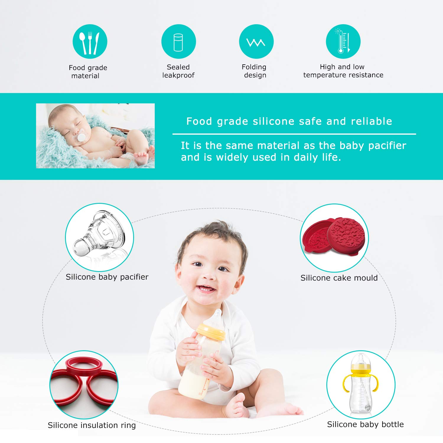 • High-Quality Food Grade Silicone: Environmentally friendly, BPA free , non-toxic and odourless, safer and healthier.