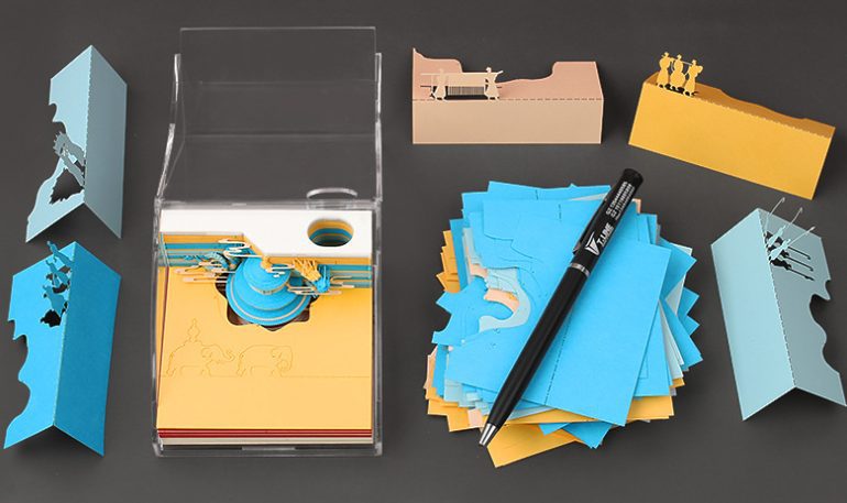 • Desk Art Decoration: This 3D Post It Desk Set becomes an art decoration when you tear off the post-it notes page by page