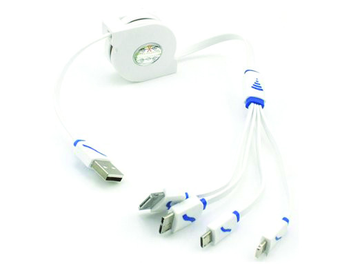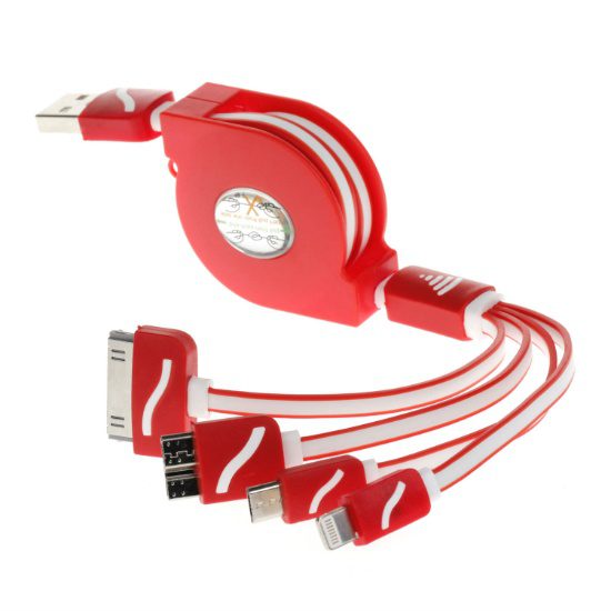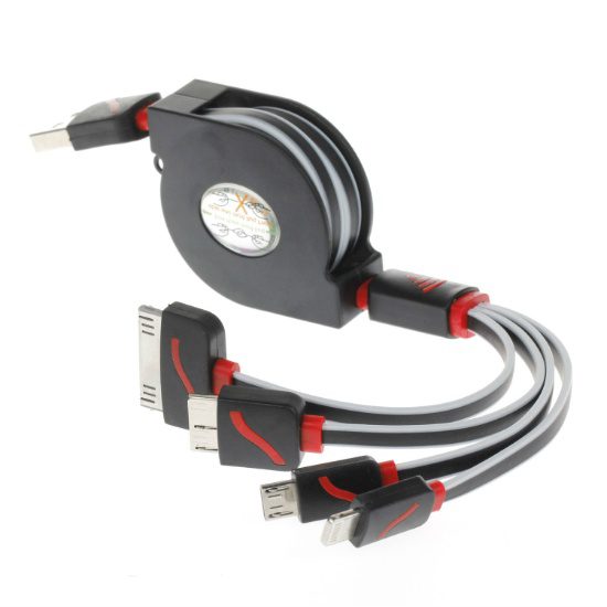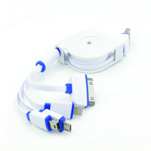 - Synopsis:4-In-1 Retractable Charging Cable that is designed to cater to your convenience. Compatible to iPhone, Android, MicroUSB, and Samsung Note, this cable allows you to charge multiple devices to charge or to sync your devices on the go. (The charging ends are customizable upon request)