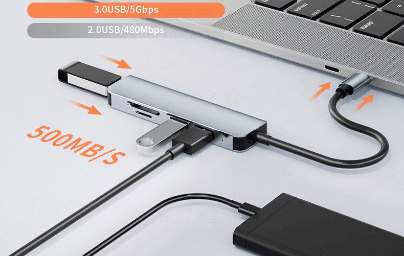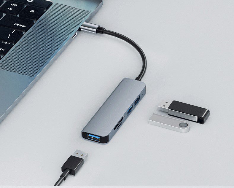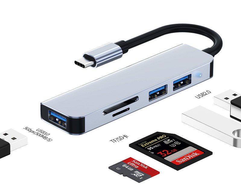 5 in 1 usb sd card type c adapter hub