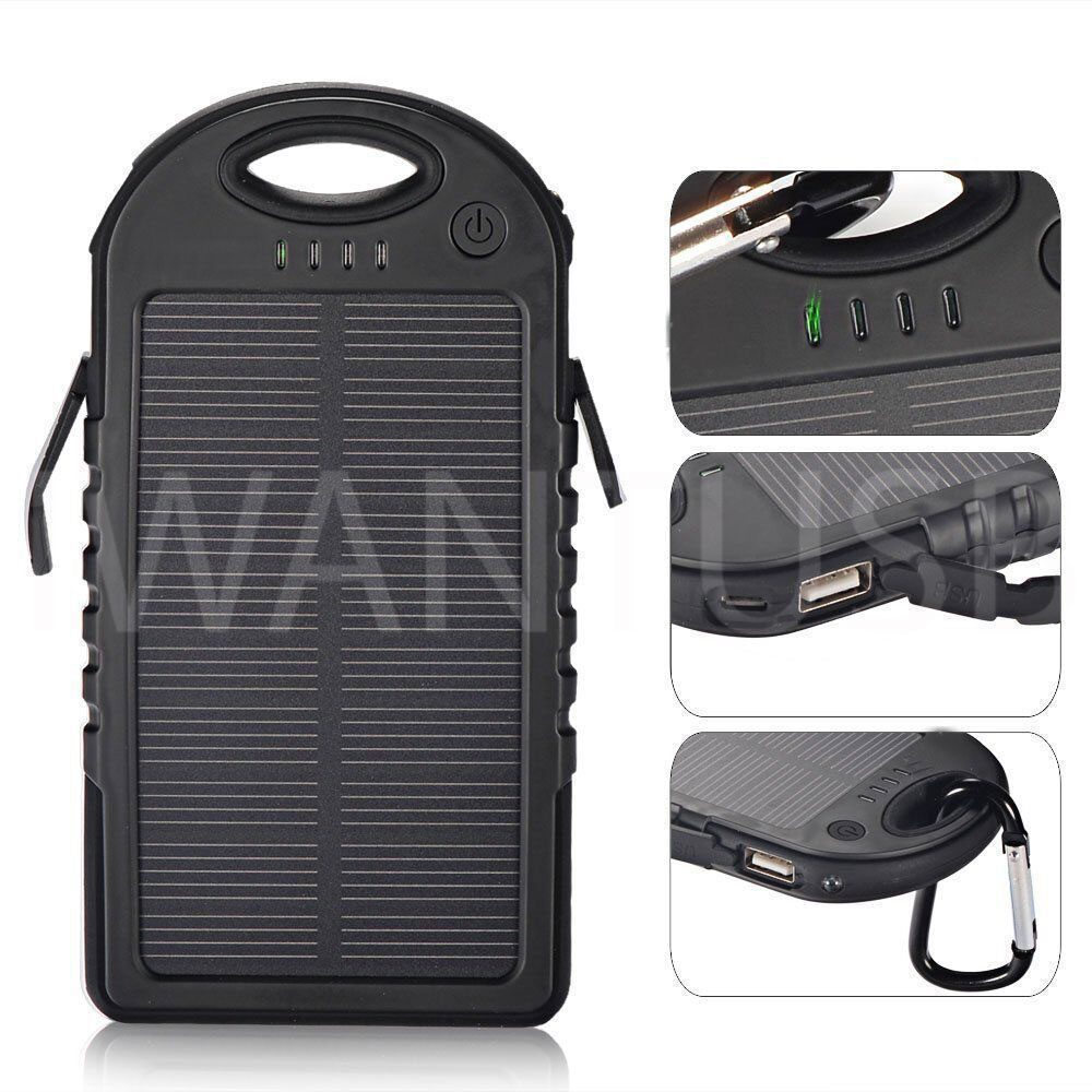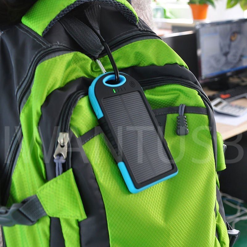 • “A Portable 5000mah Solar Powerbank which allows you to charge via the conventional cable or the solar panels”