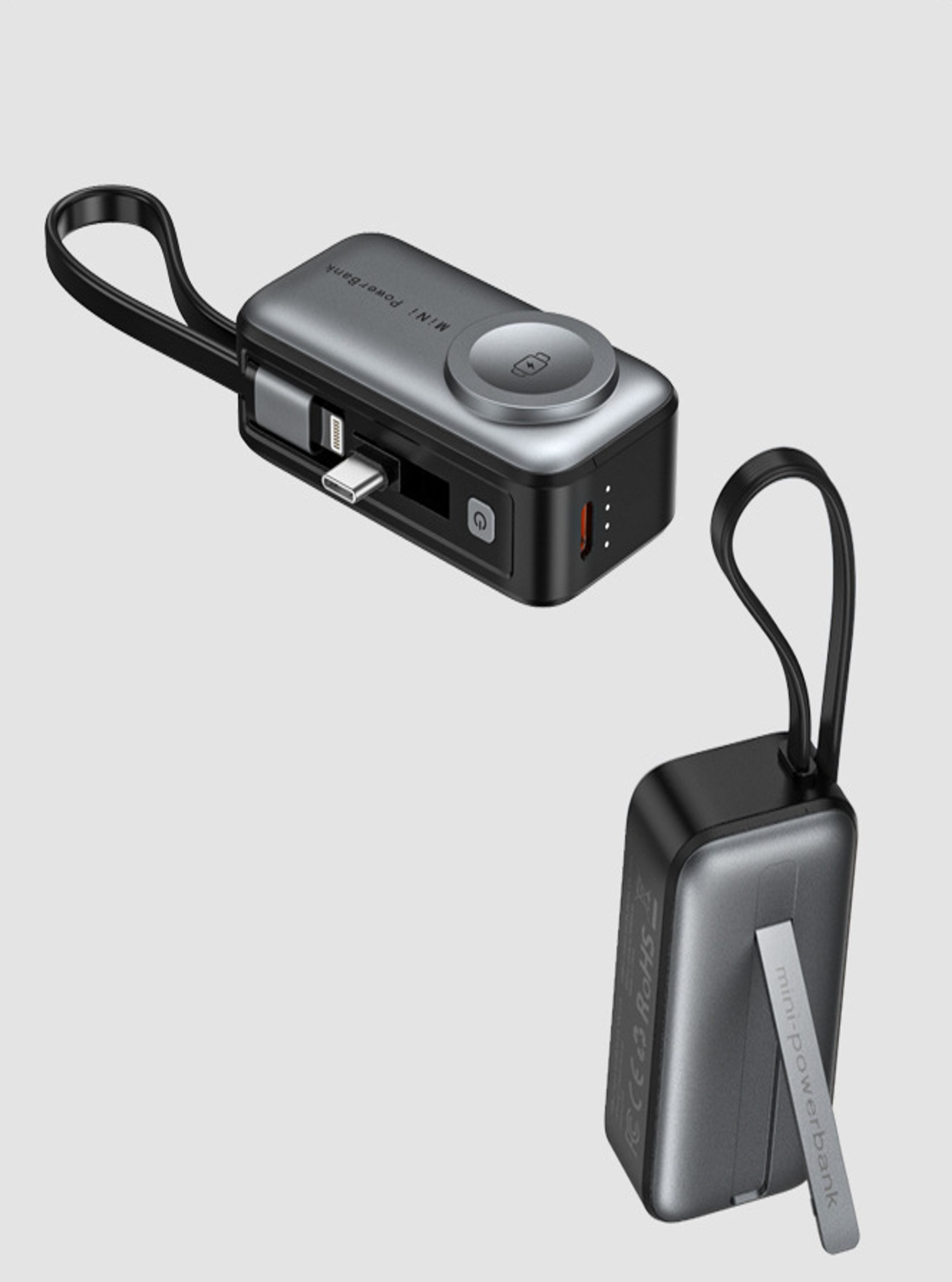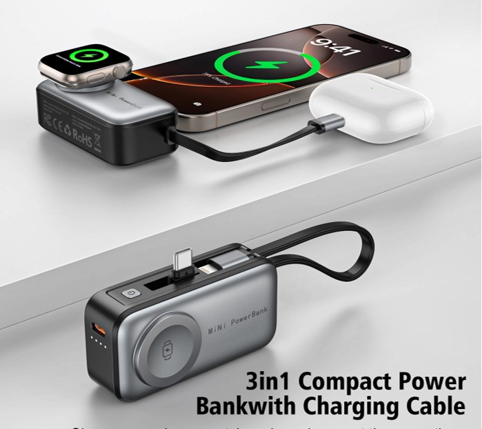 • Compact & Powerful: 4800mAh tail-insert power bank provides efficient charging for iPhone and iWatch.