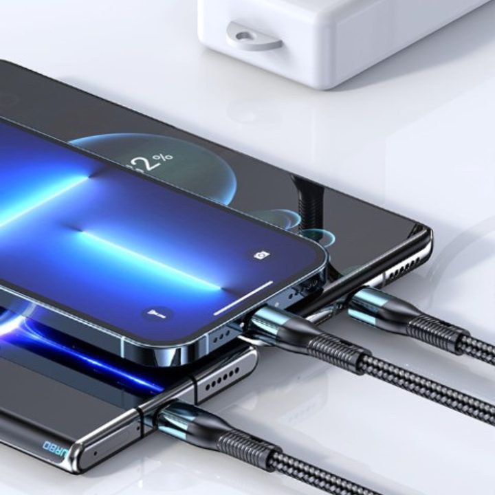 66w 3 in 1 fast charging kevlar cable