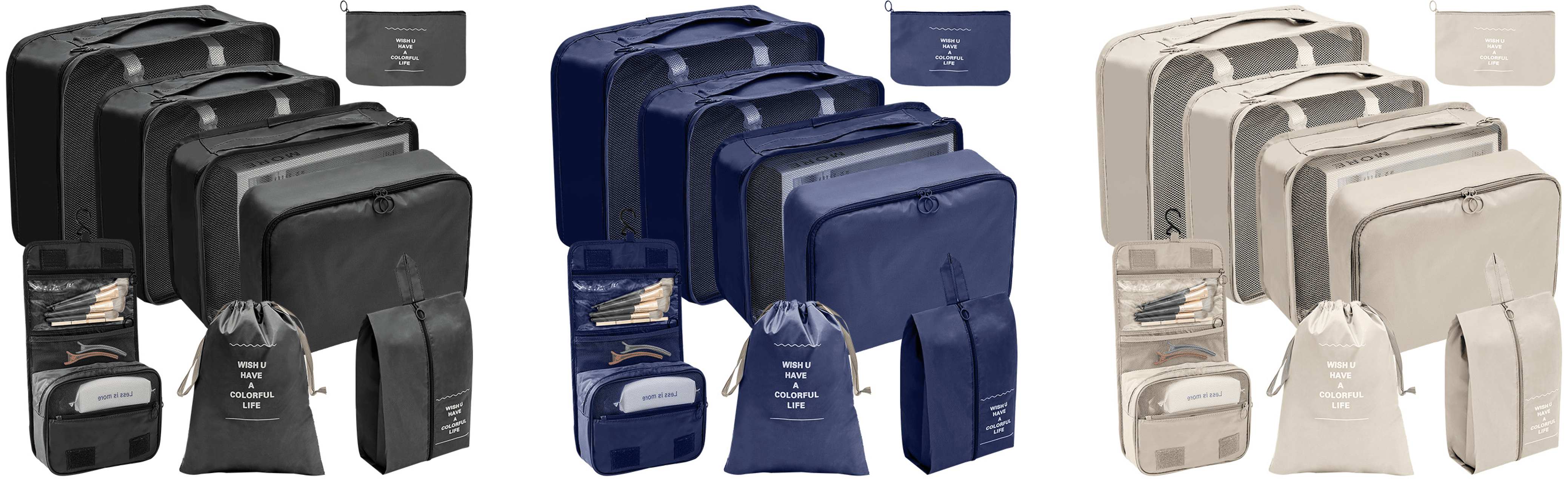 - GREAT WAY TO KEEP ORGANIZED: Your 8 piece set fits like a glove most airline carry-on suitcases, tote, weekender, backpacks and duffel bags. Great way to keep organized for Family breaks, business travel, backpacking, camping, hiking, RV, cruise holidays & saddlebags.