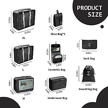 - Optimal Organization: Say goodbye to the hassle of rummaging through your luggage to find specific items. With the 8-Pack Travel Bags, you can neatly separate clothes, toiletries, electronics, accessories, and more, ensuring easy access to what you need, when you need it.