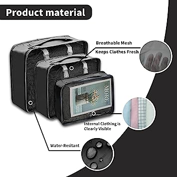 - Space-Saving Packing Cubes: The set includes packing cubes of different sizes, which fit snugly into your suitcase, backpack, or carry-on. These cubes efficiently compress your clothes, maximizing luggage space, and preventing wrinkles during transit.