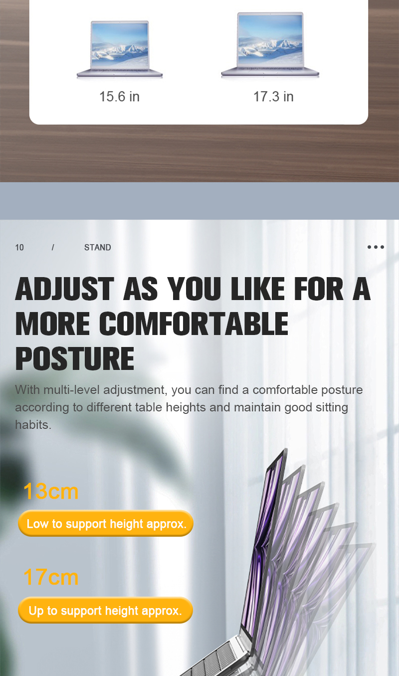 Enhances typing comfort and screen viewing height