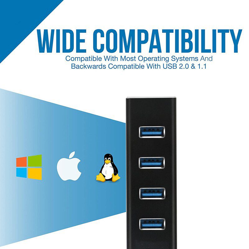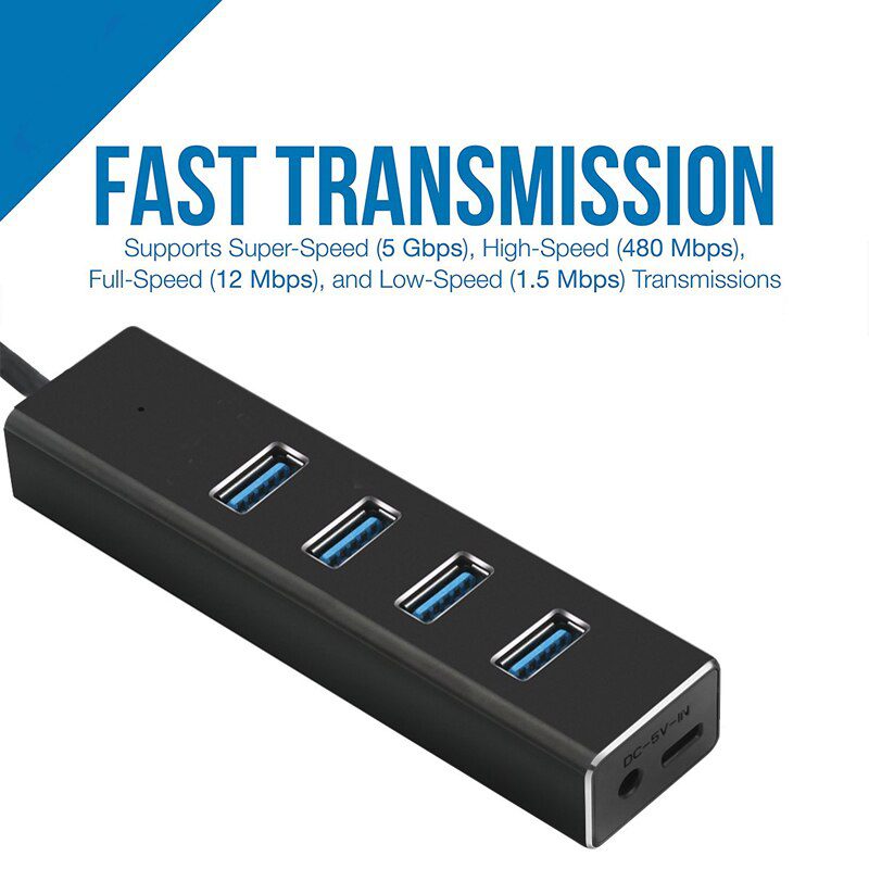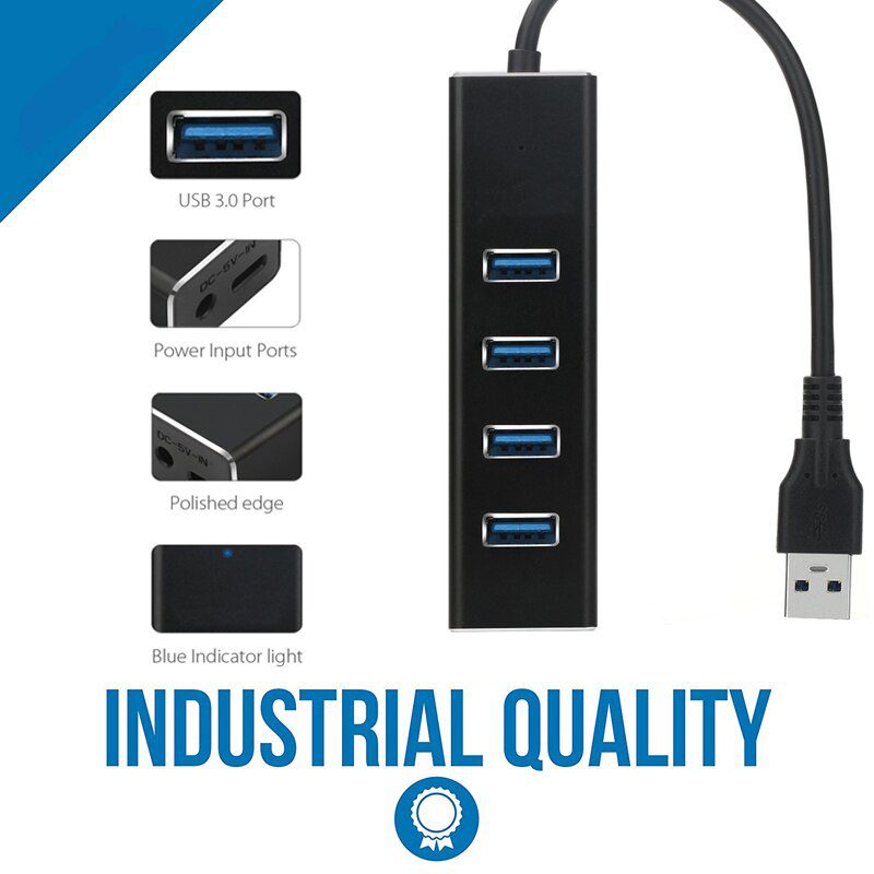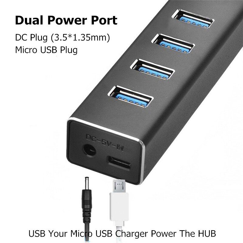 • This computer accessory supports high to low speed transmission with dual power port (DC plug and micro USB). Its industrial quality has its premium aluminum polished finishing edge, and a blue indicator light to show if it is charging.