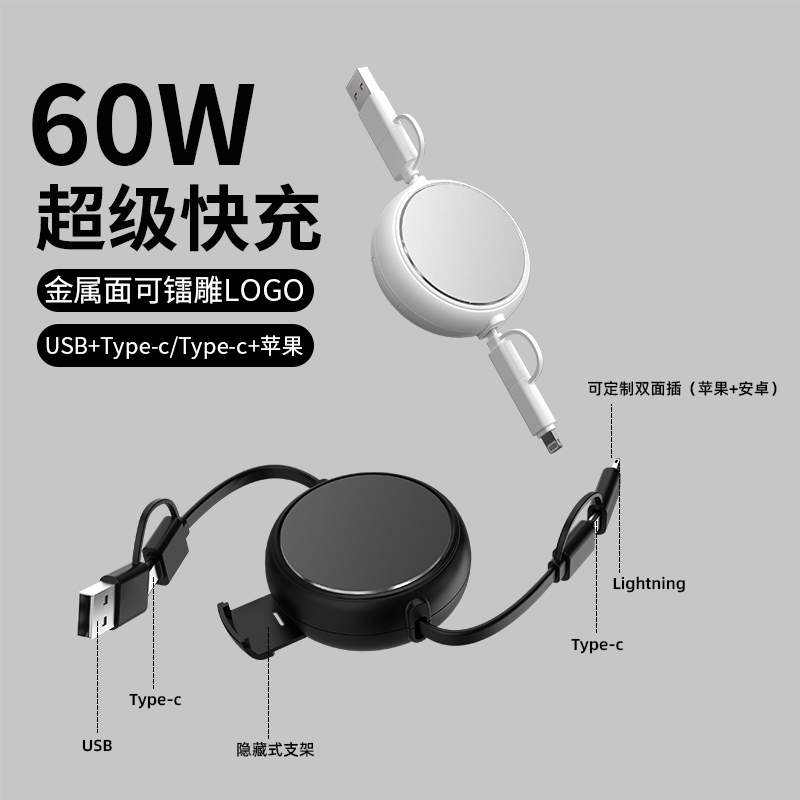aluminum retractable 65-watt phone stand cable