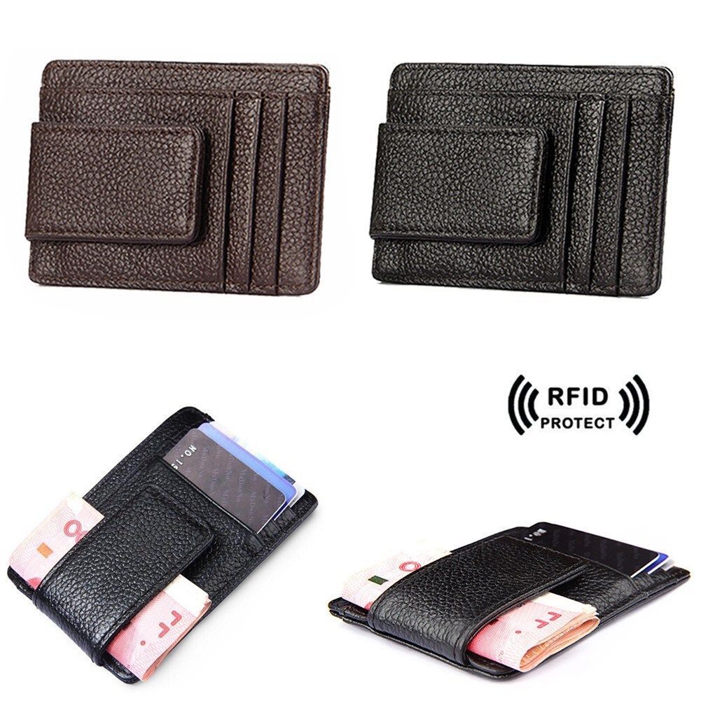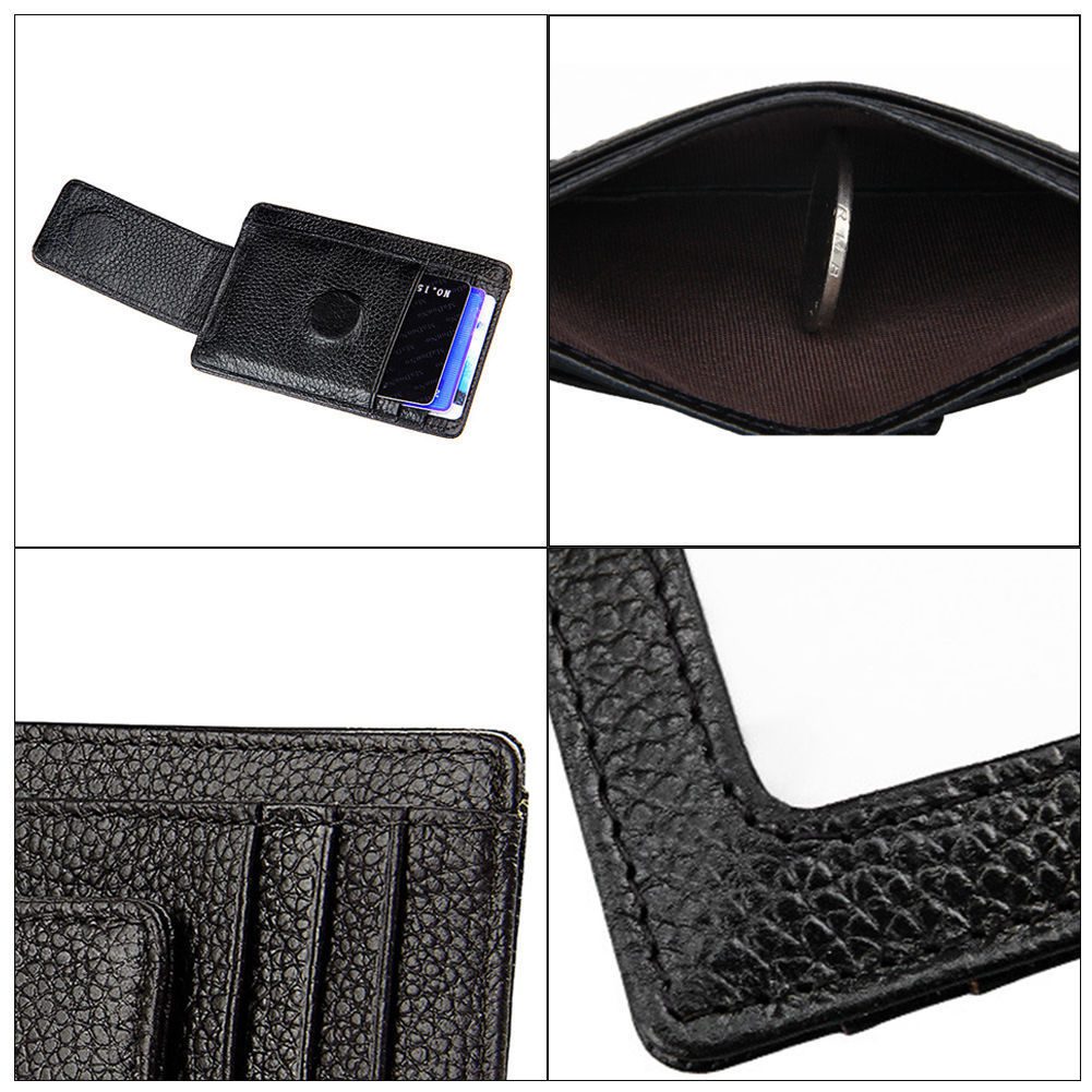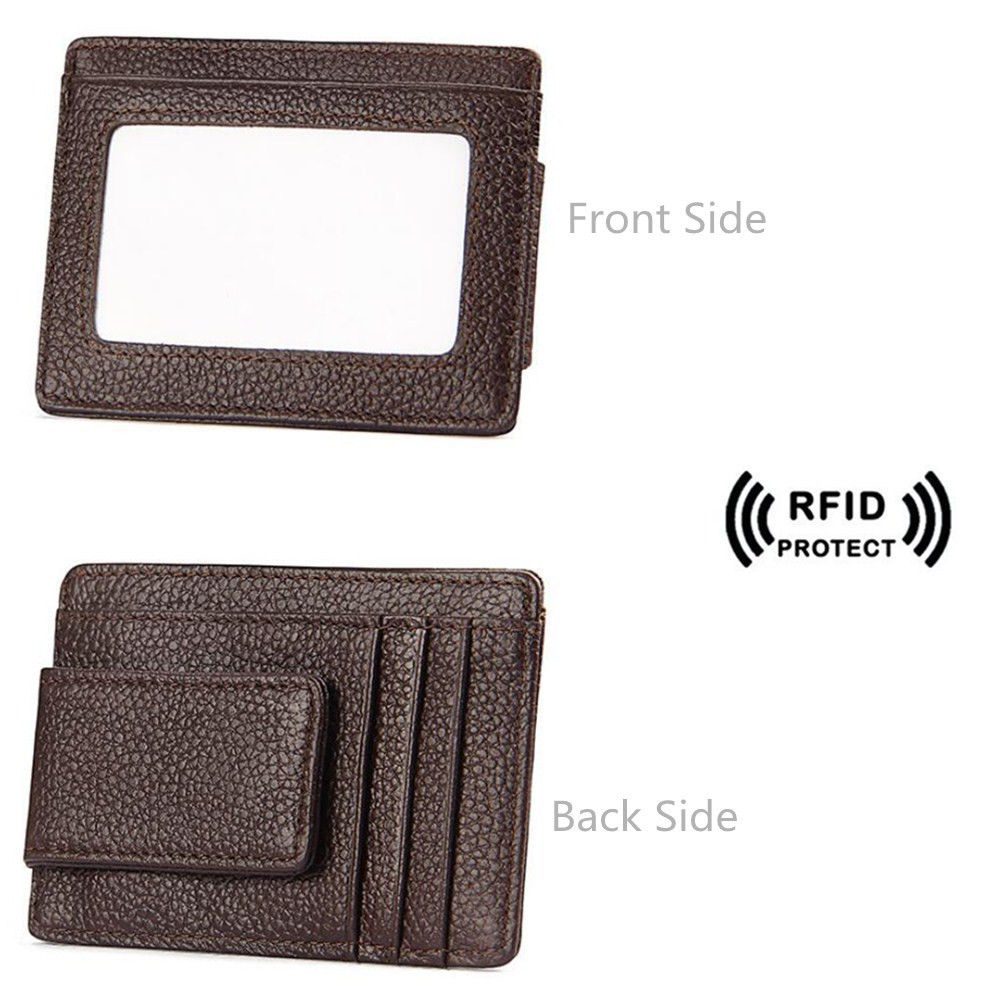 - LARGER CAPACITY: real leather magnetic clip, magnet is strong enough to hold 9 piece cash more or less(fold them in half). By special process, another side magnetism has been weakened. This compact wallet is very practical with 6 card slots and 1 receipt holder.