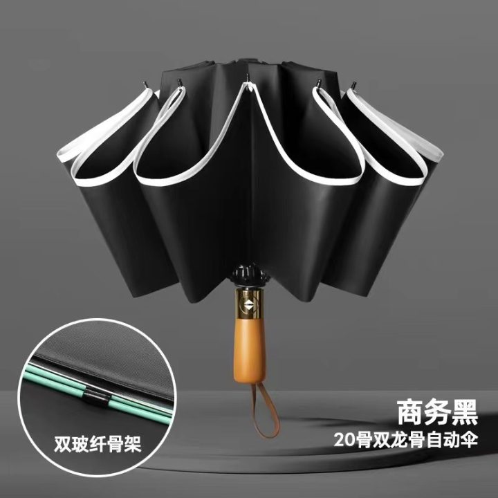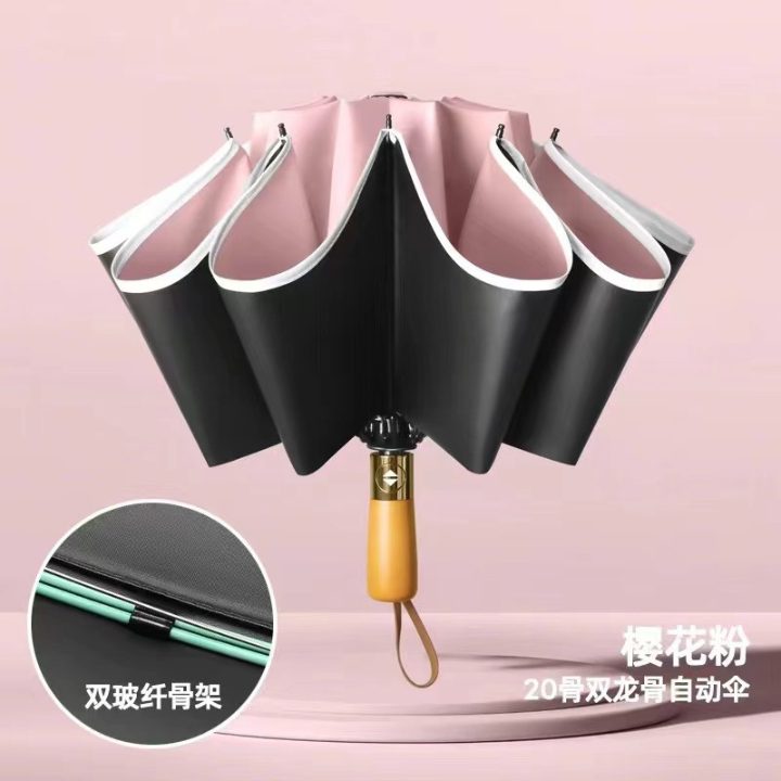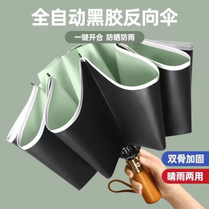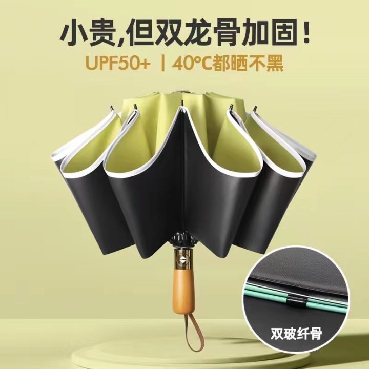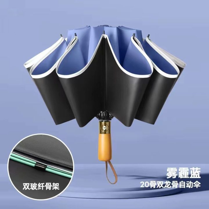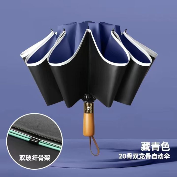 auto wooden uv reversible umbrella