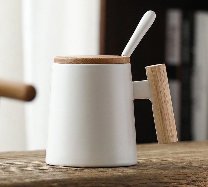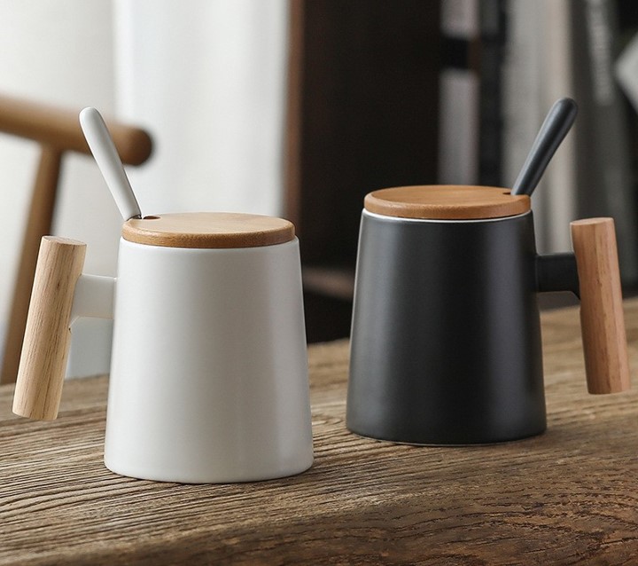 Elegant Design: Combines a wooden handle with a ceramic coffee cup, offering a stylish and rustic look.