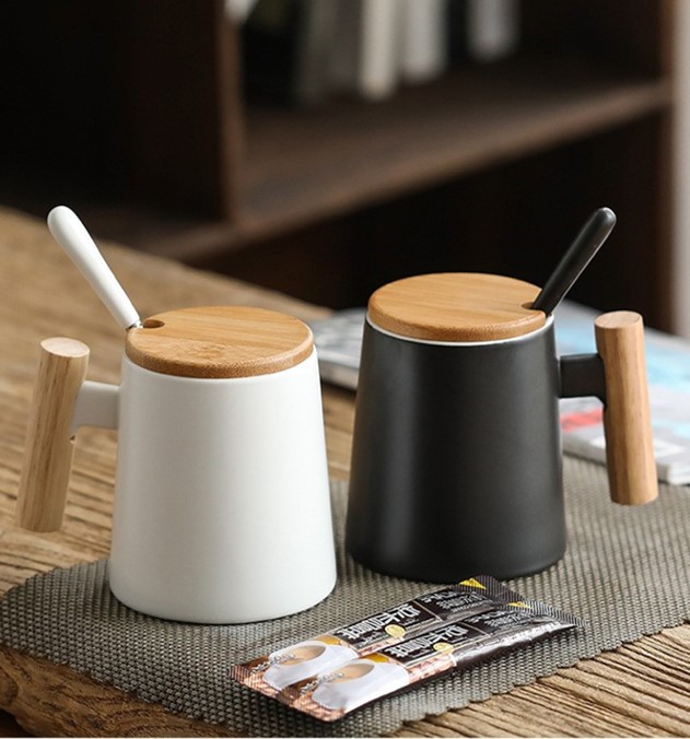 Durable Materials: High-quality ceramic cup with a sturdy wooden base.