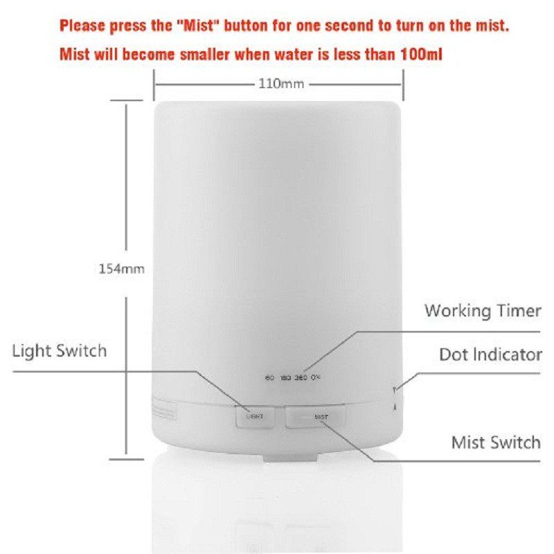 - Applicable Area: Aromatherapy: 215 Sq. ft. / Humidification: 108 Sq.ft