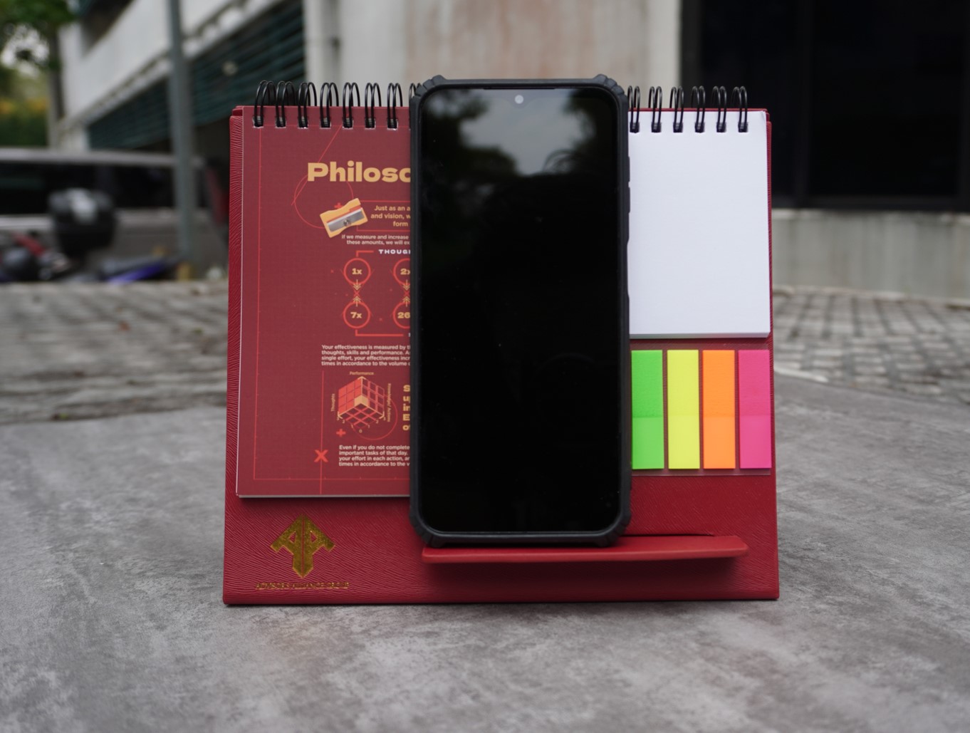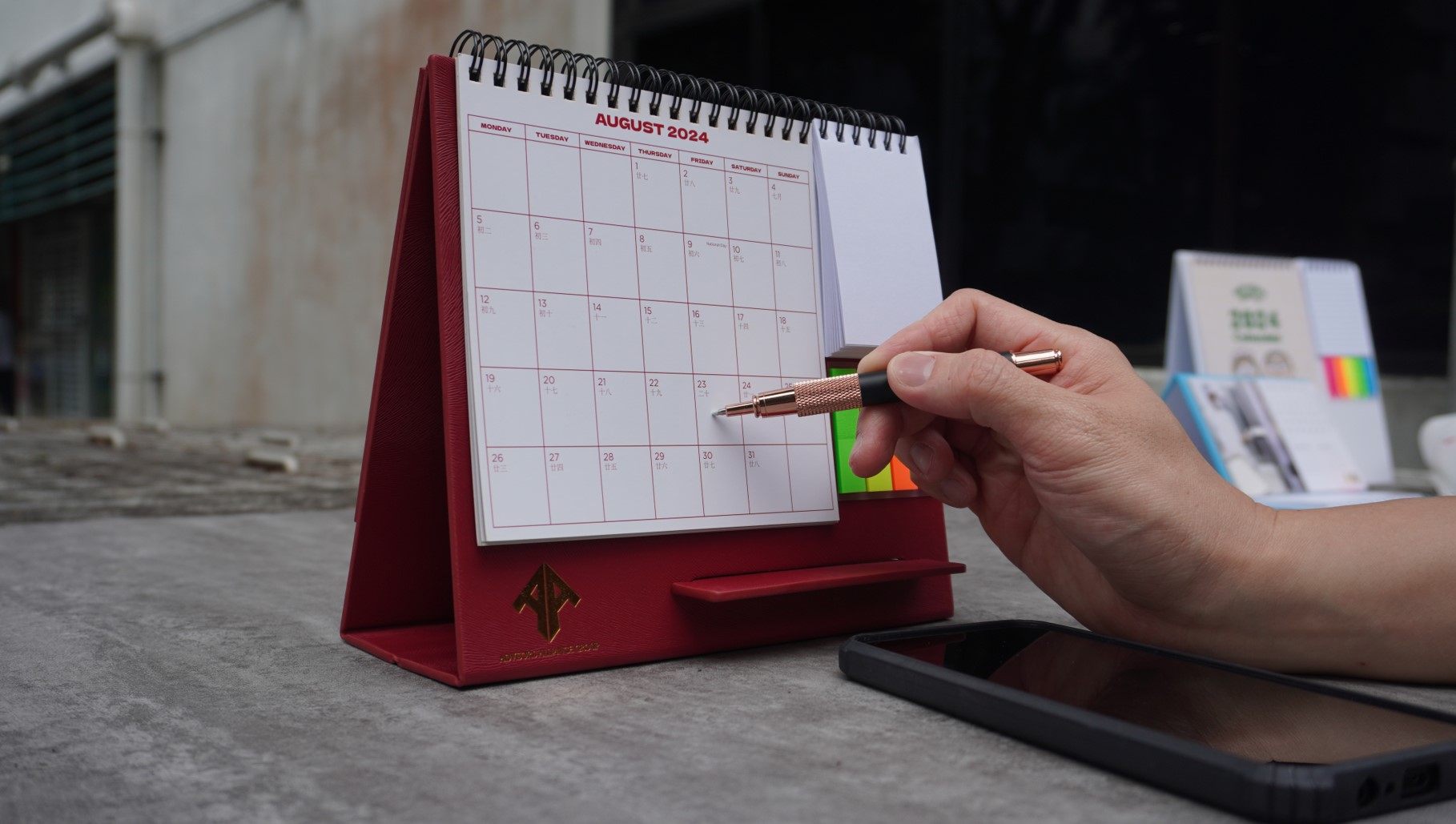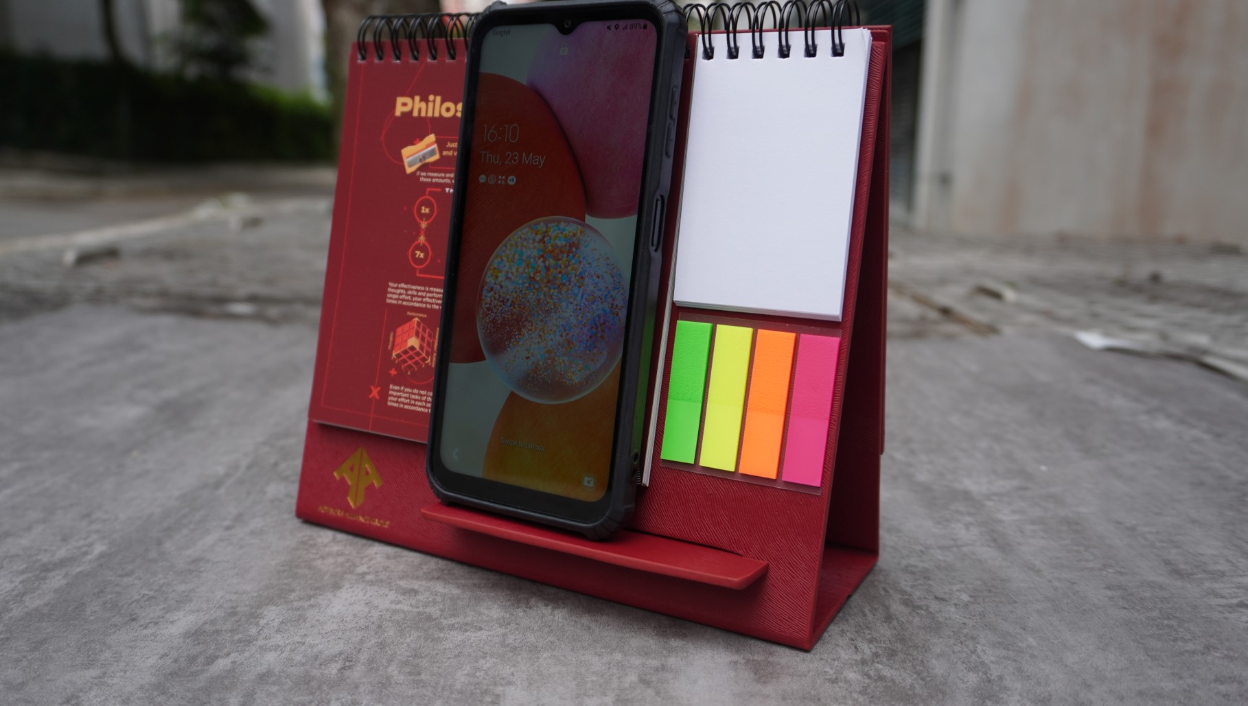 Phone stand serve as convenient for quick reference and syncing schedules on the phone.