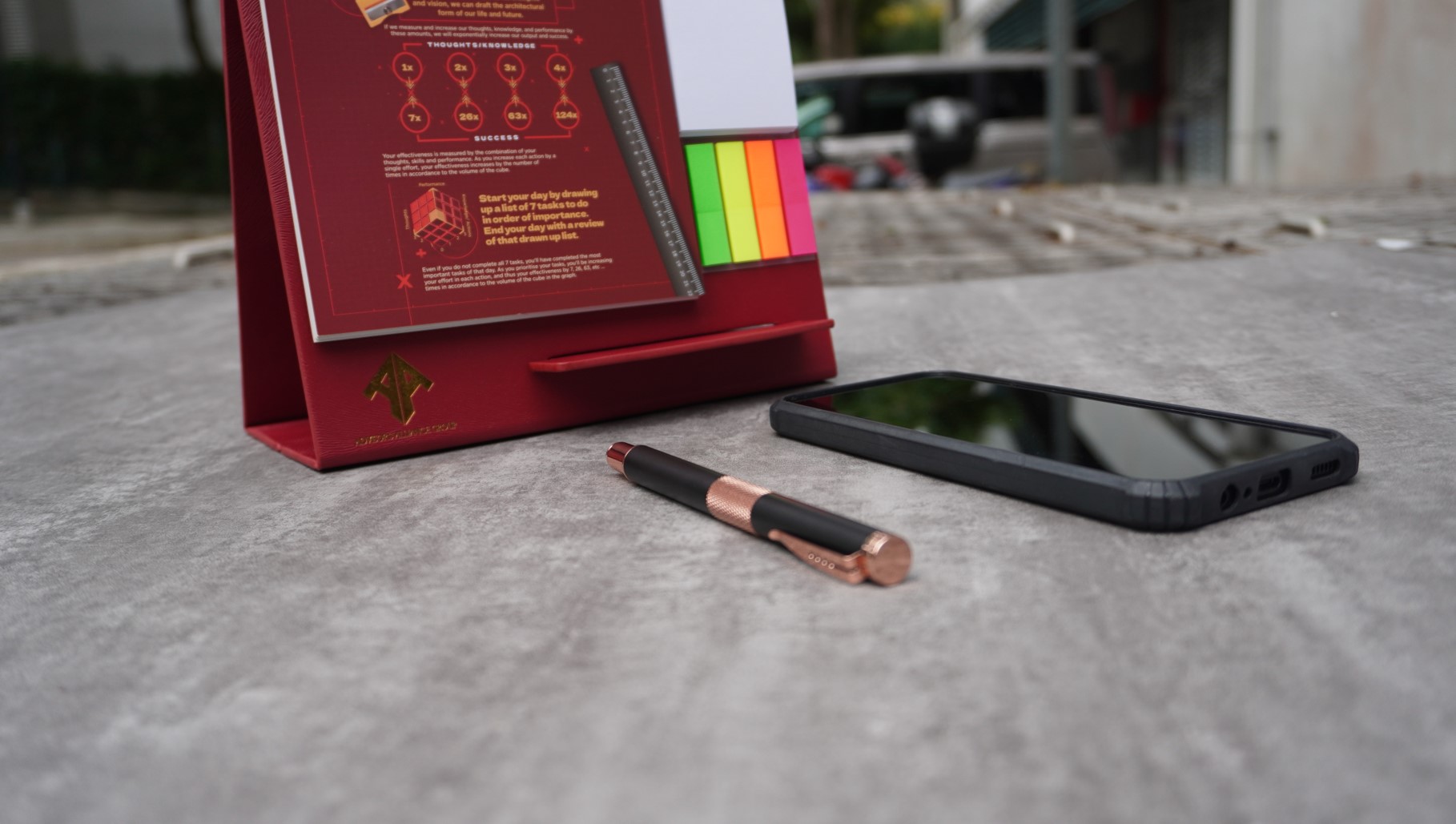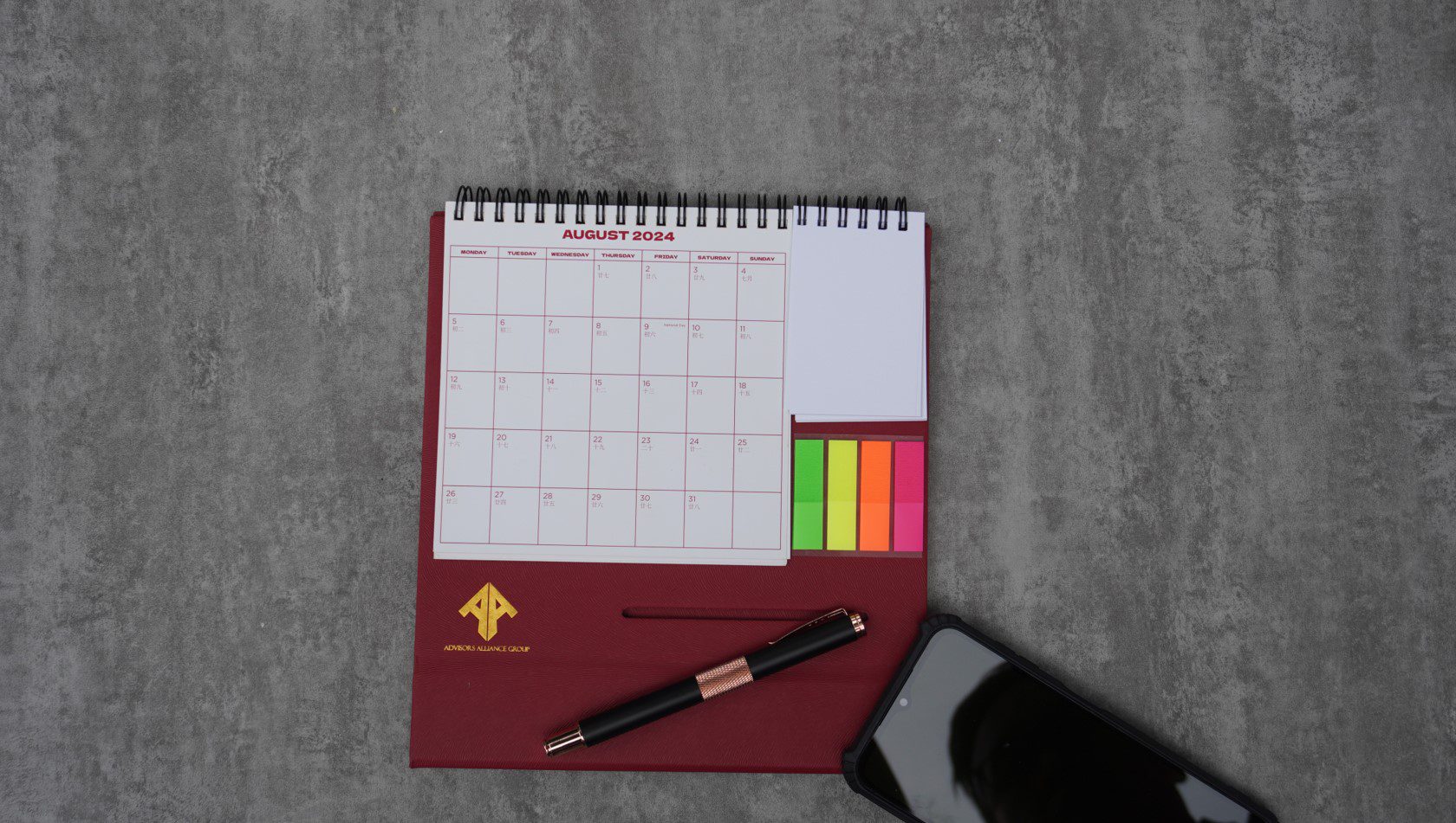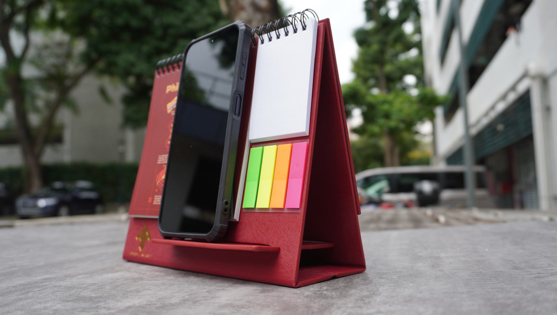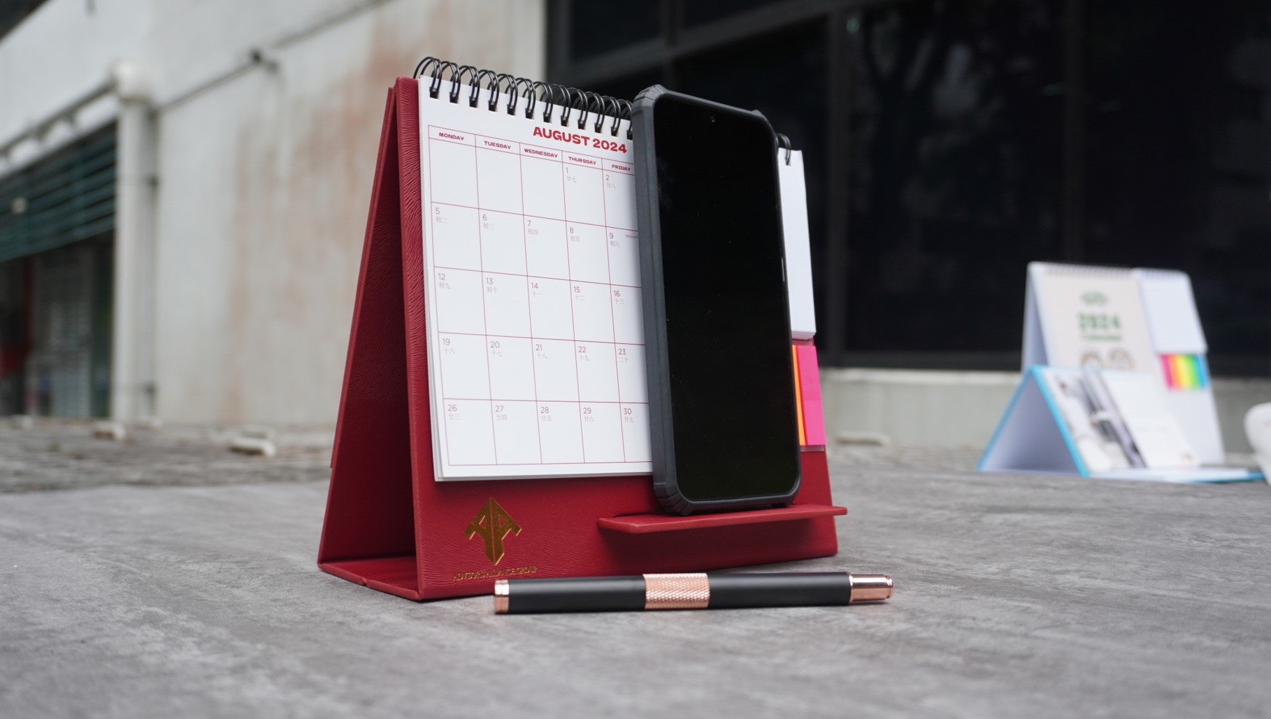 desktop leather calendar post it phone stand set