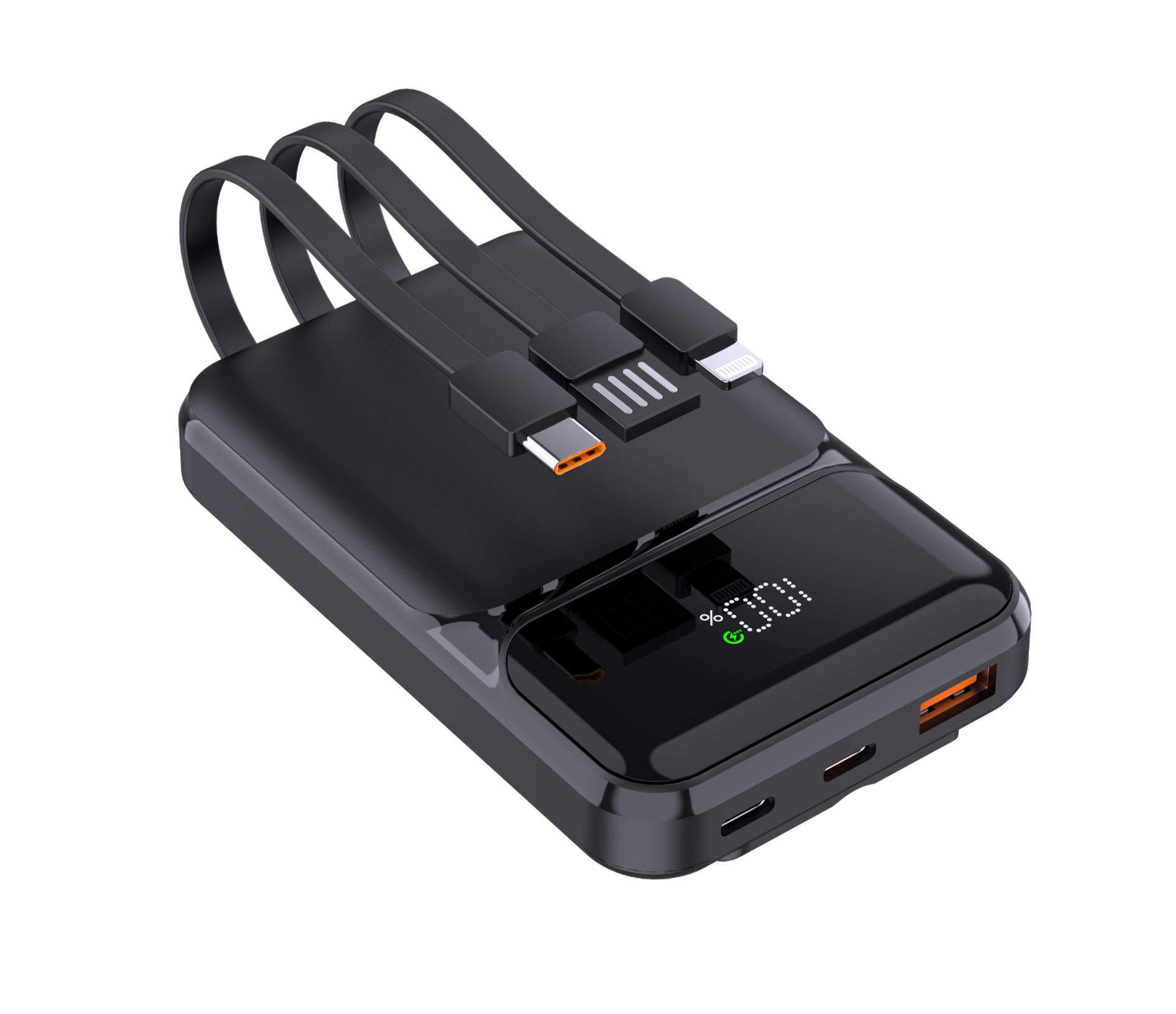 Built-in Cables: Equipped with integrated cables, this charger eliminates the need for extra cords, offering a tidy and convenient charging solution.