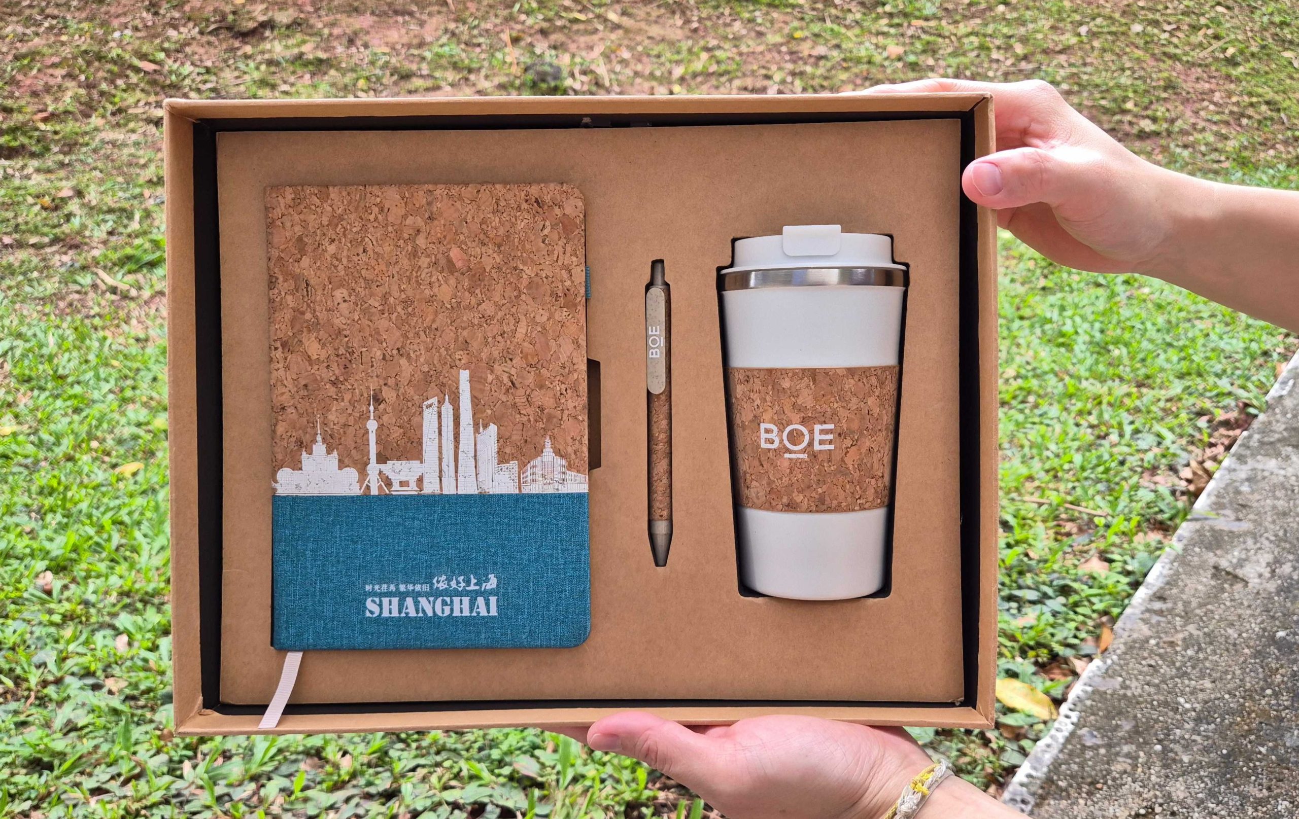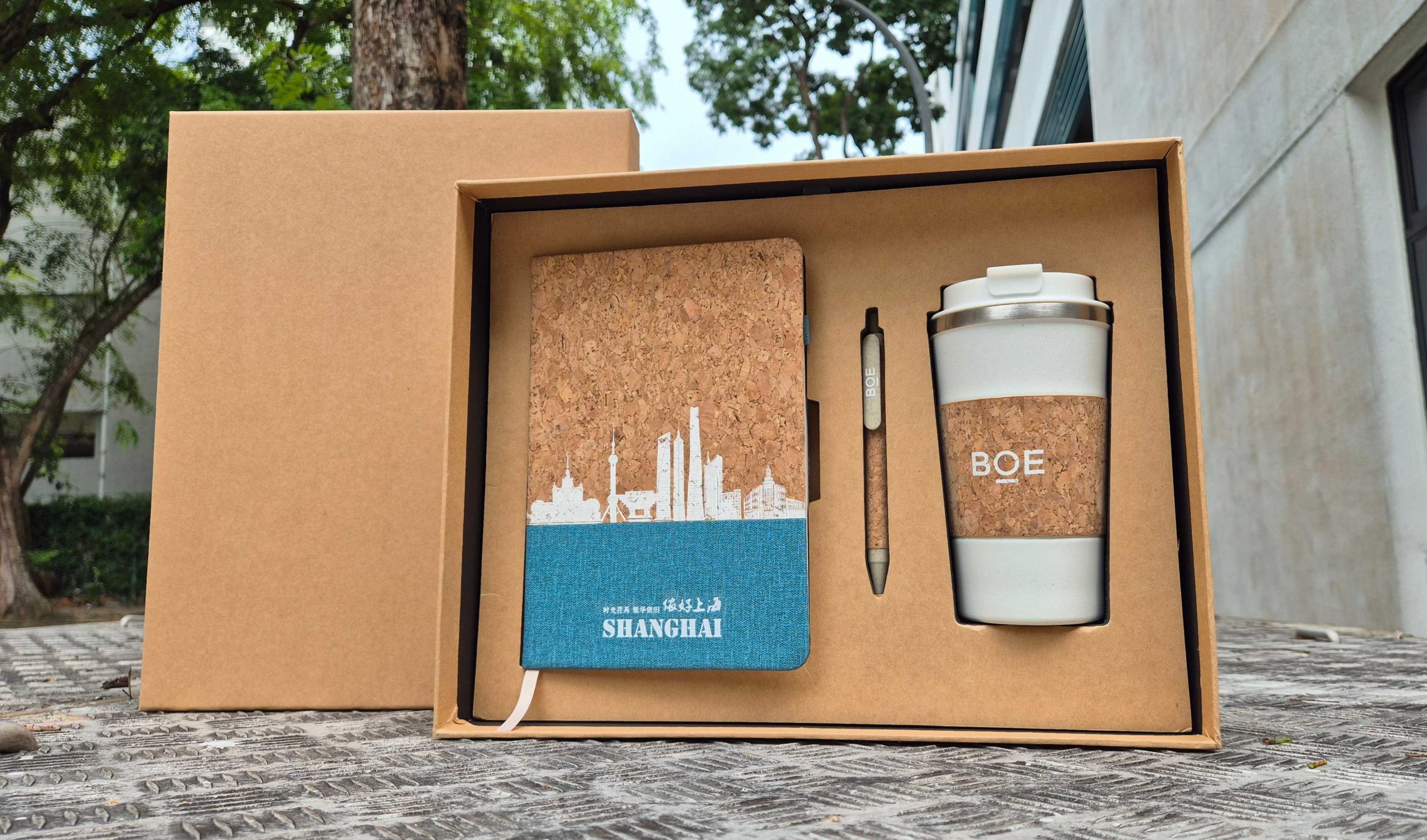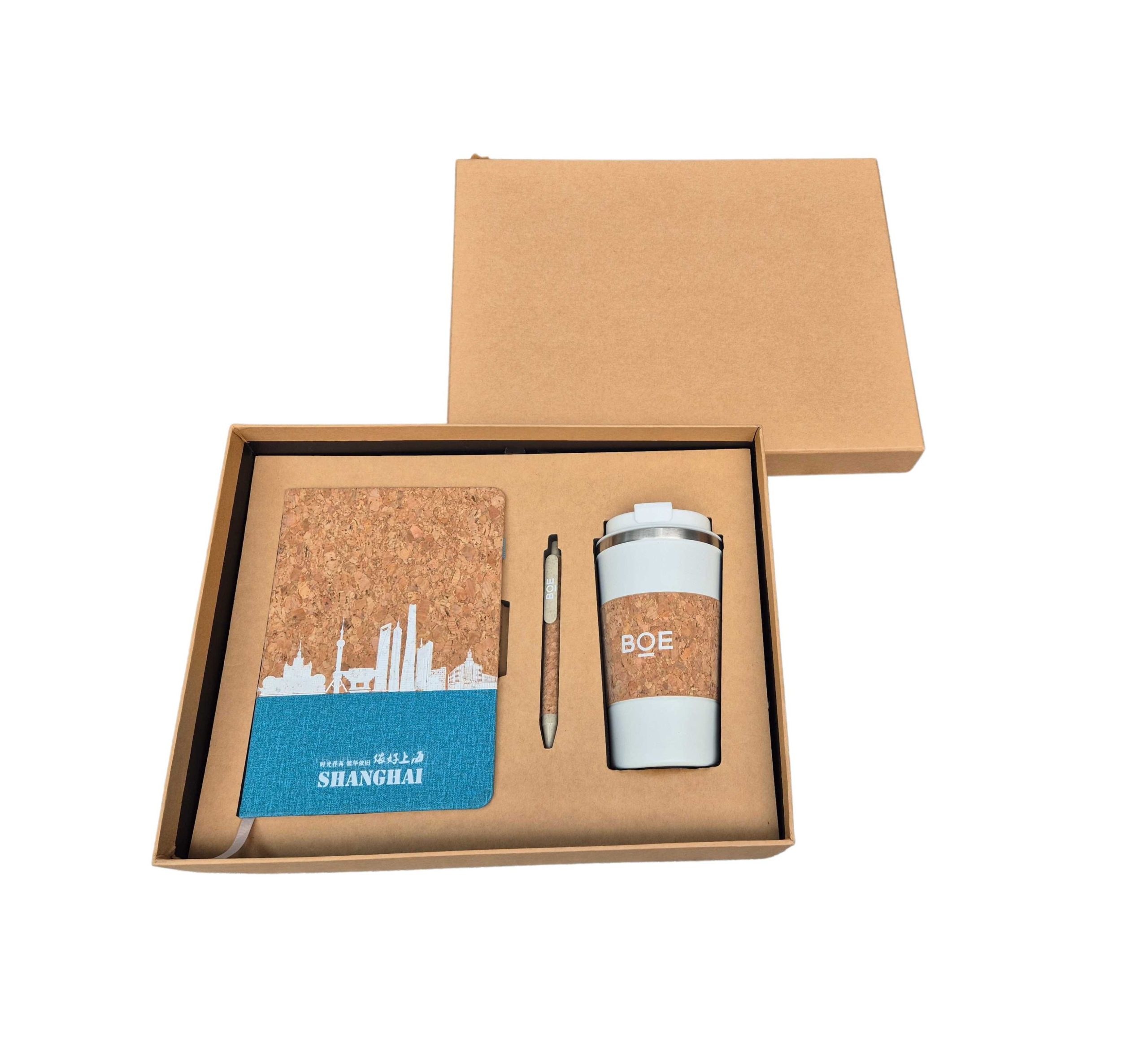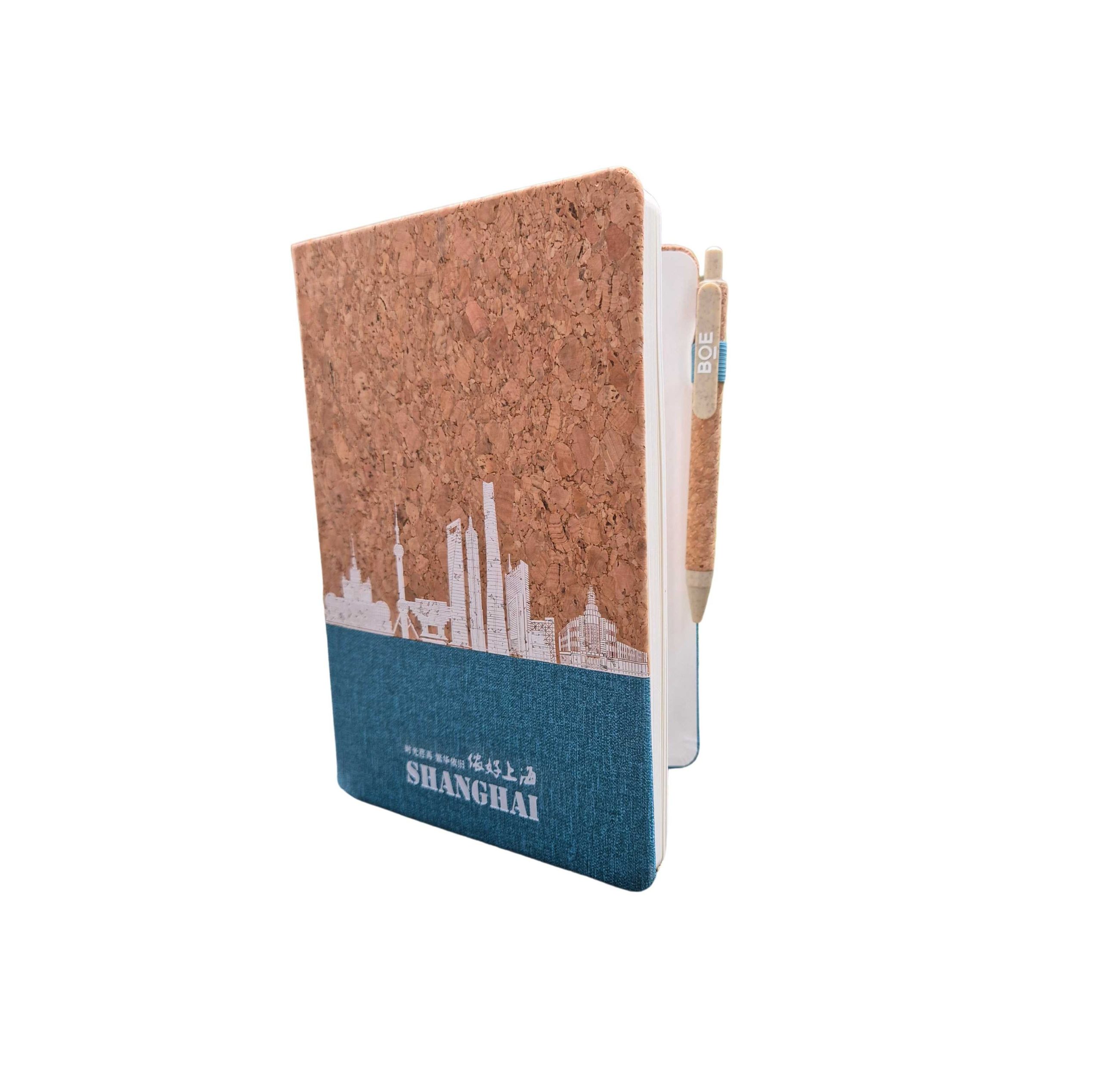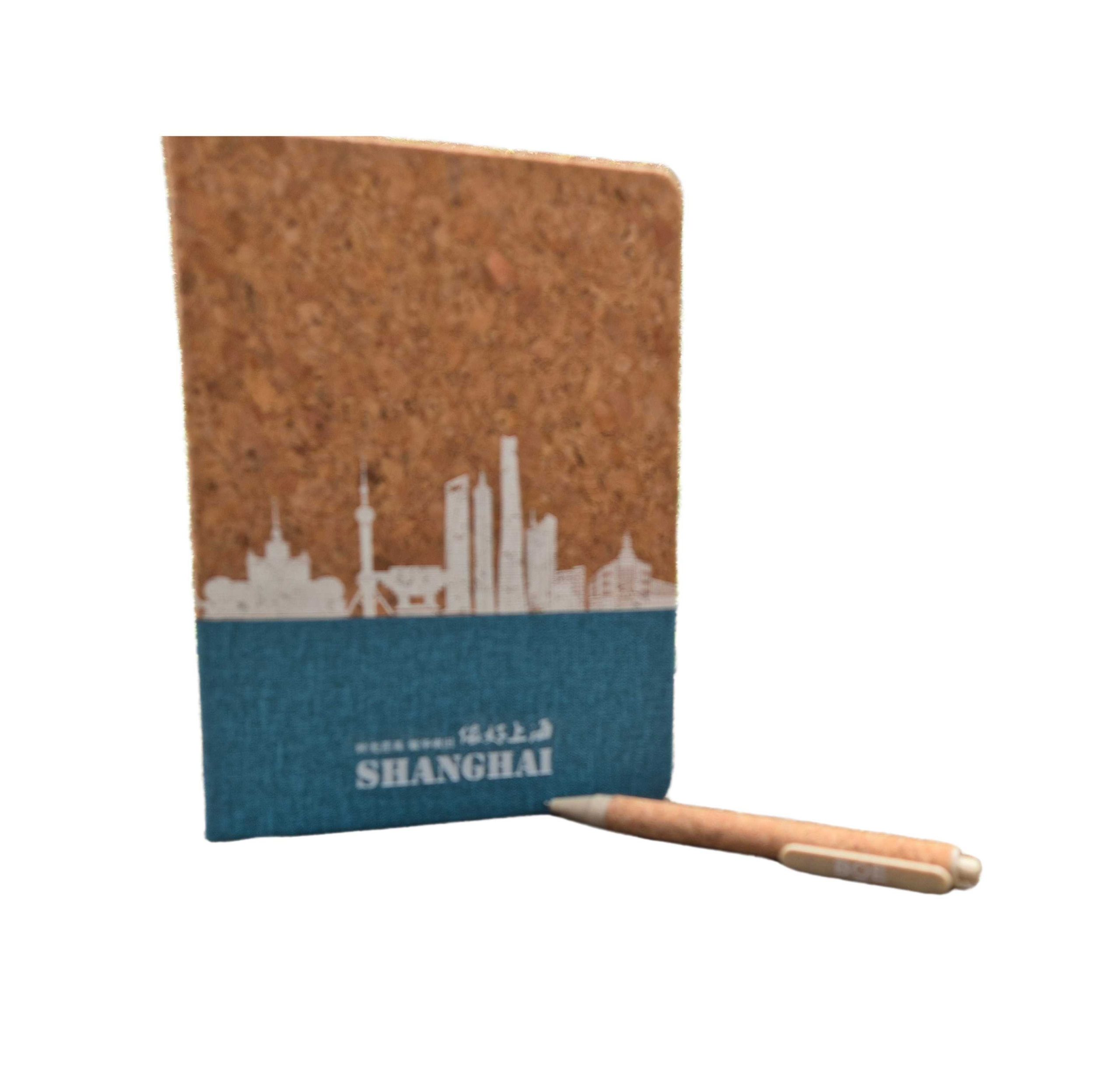 A5 Cork Notebook• Size: 212 × 148 mm• Cover: Biodegradable cork + skyline imprint• Pages: 80 sheets / 160 pages of FSC-certified eco paper (100g)• Logo Options: Silk screen, UV 3D emboss, or foil stamping