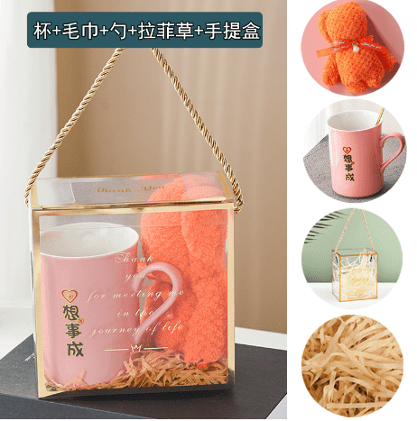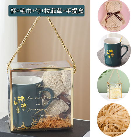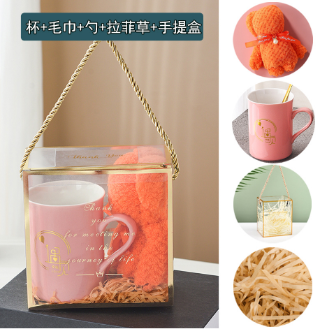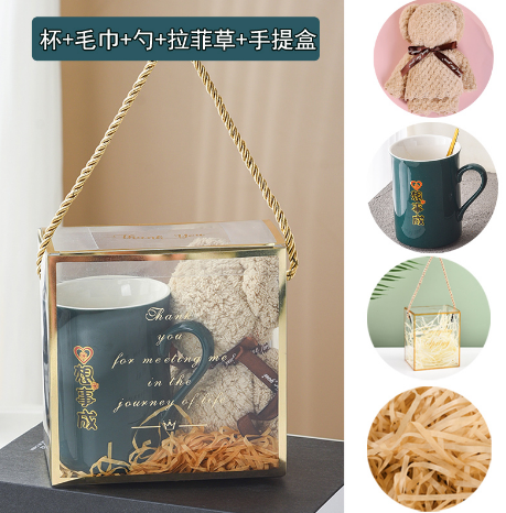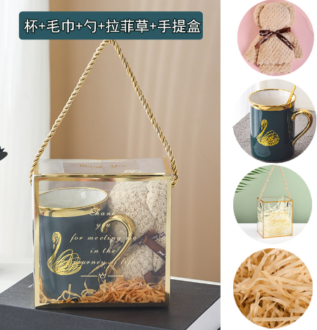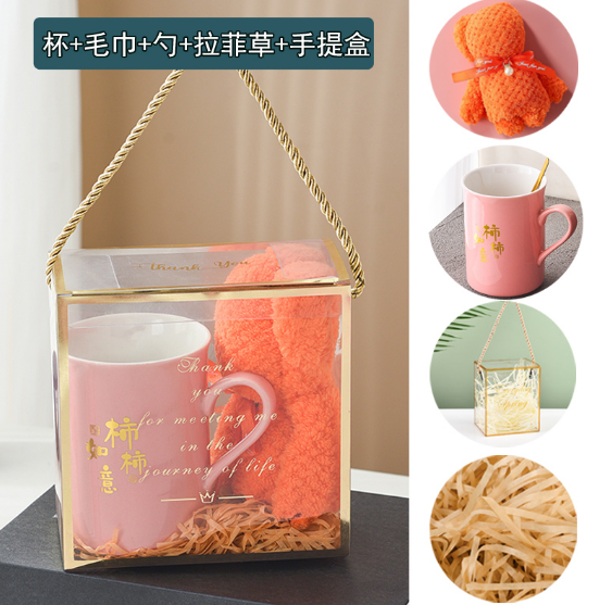 Box: Transparent PET acrylic with reinforced gold edges and rope handle