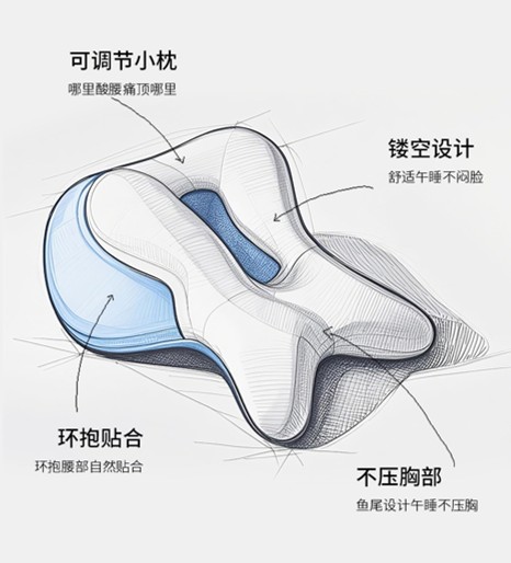๐ง Ergo-Cavity Design โ Prevents chest pressure while napping
