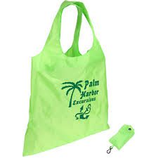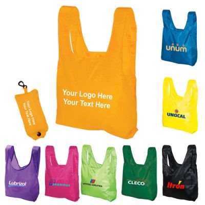 - Promotional folding tote bags in a pouch are fashionable, reusable, lightweight, and durable–perfect the way you expected them to be! All this is because these folding totes are made up of lightweight 190 T polyester, which is a softy and sturdy material and they can be easily folded into a separate pouch. Also, a user can carry this folded pouch with snap closure and plastic clip by attaching it to the purse or bag. These folding tote bags are great tradeshow giveaways and can be availed at excitingly lower prices by bulk ordering.Specification