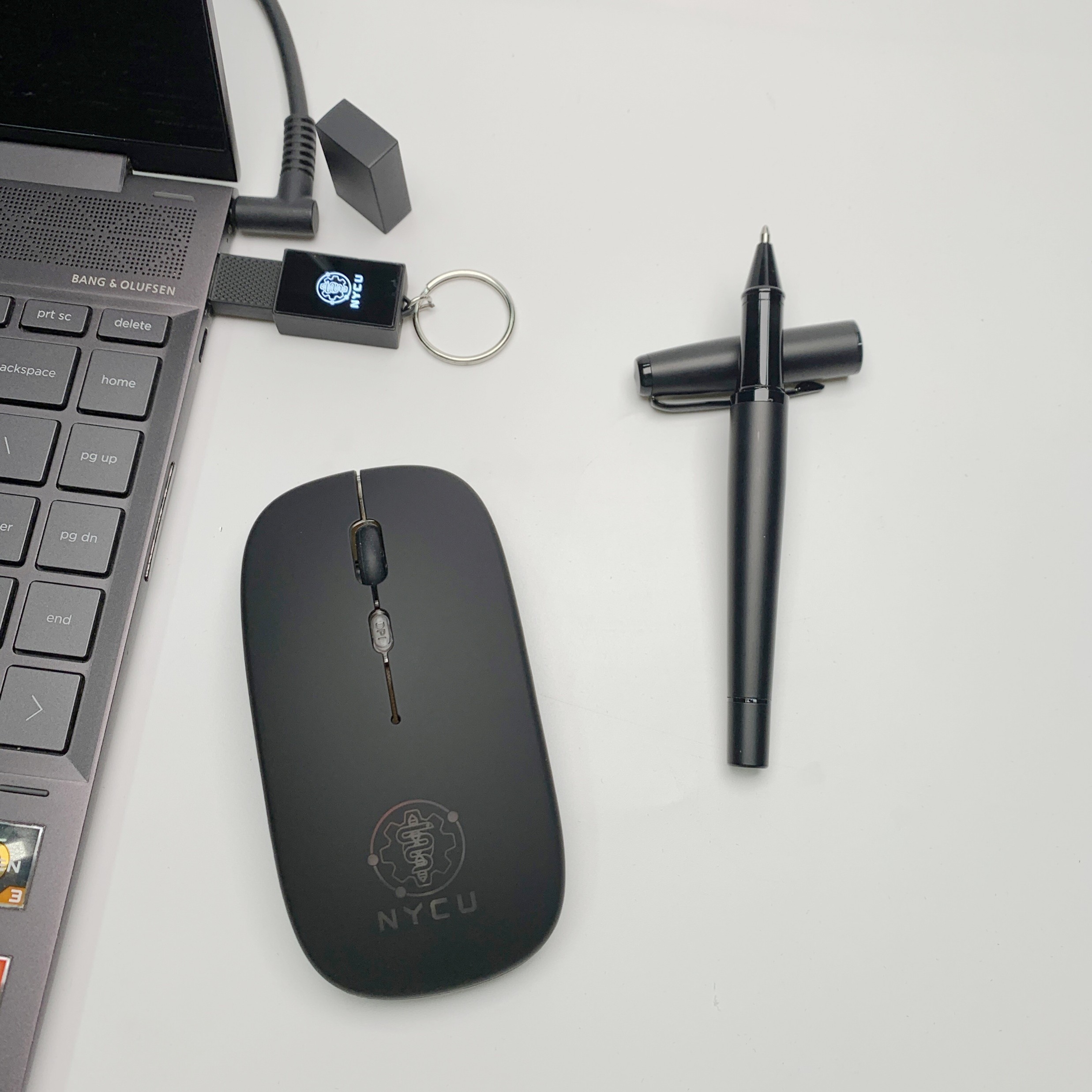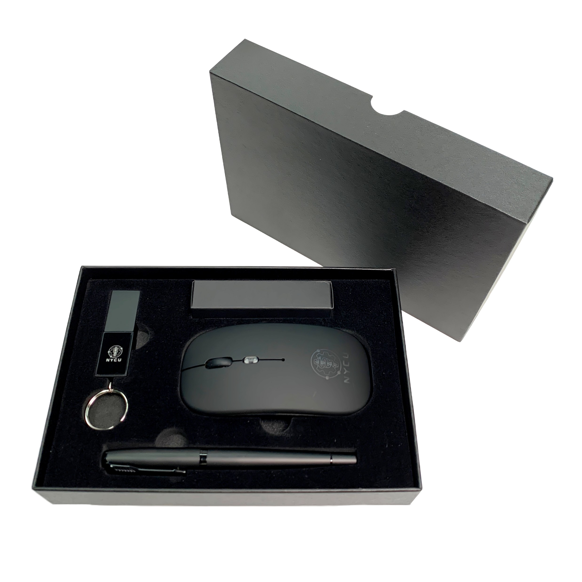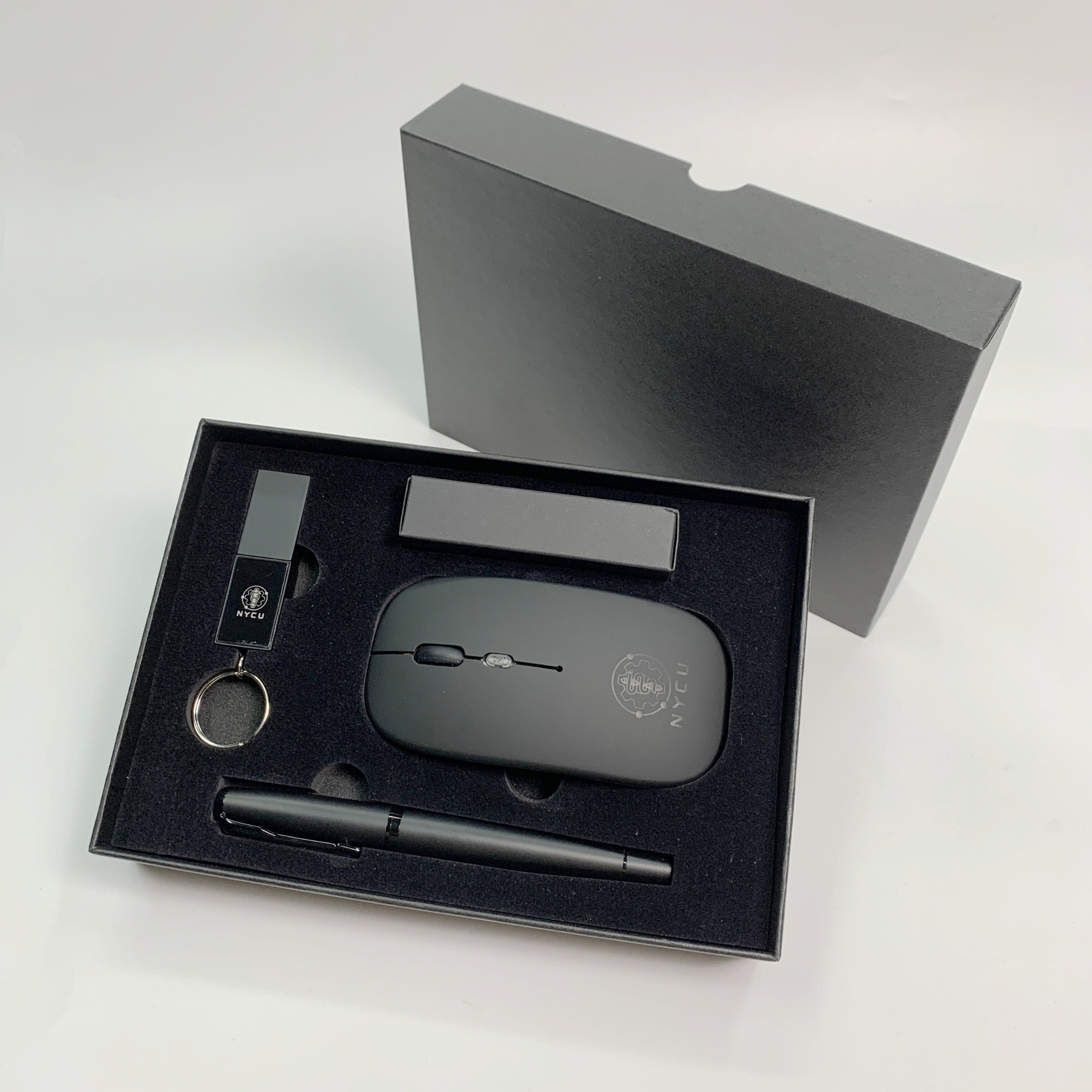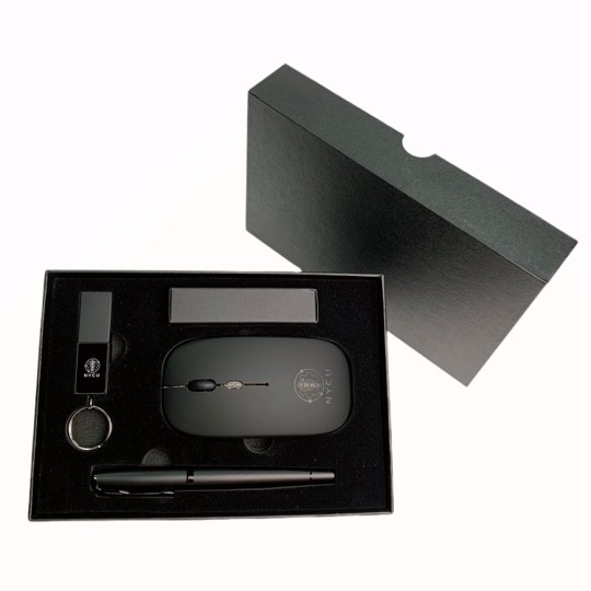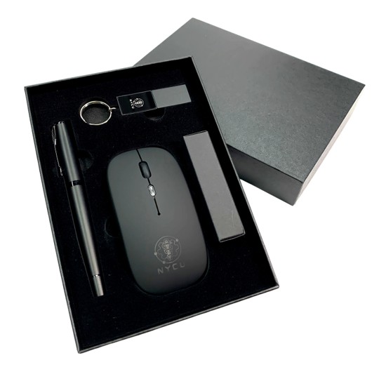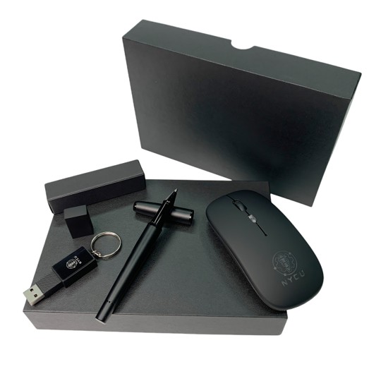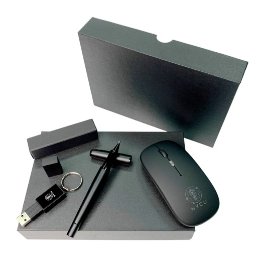 Set Includes: 1x Rechargeable Dual-Mode Wireless Mouse, 1x LED Logo USB Flash Drive (32GB), 1x Premium Matte Metal Ball Pen, 1x Leather Keyring, 1x Black Magnetic Gift Box