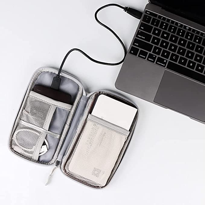 - WELL-DESIGNED: Built-in elastic loops to hold various items like USB cables, pens drive and tools, etc. Large mesh pockets with zipper for external mobile/ hard disk/ power bank, etc. Small mesh pockets for power adapter/ iPod/ ear buds/ pen drive etc.