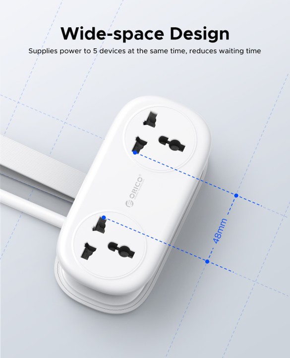 Wide-space design (48mm gap) fits large plugs easily