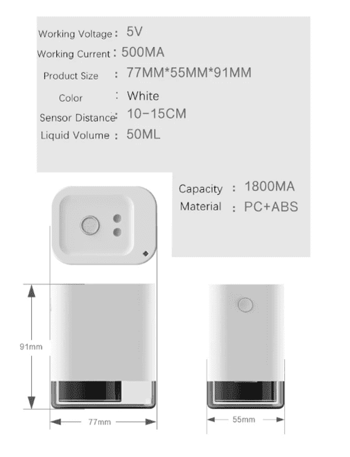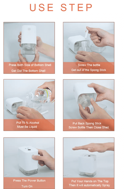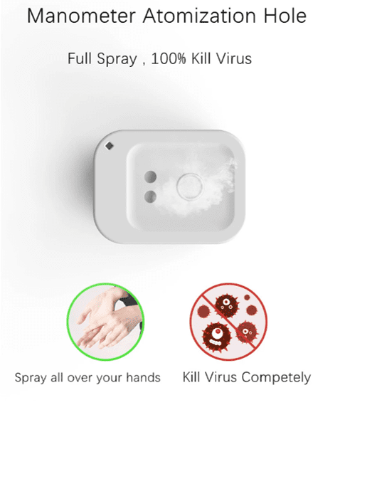 • Just put your hand under the sensor to start the sprayer, you can effectively avoid cross infection without touching the alcohol dispenser.