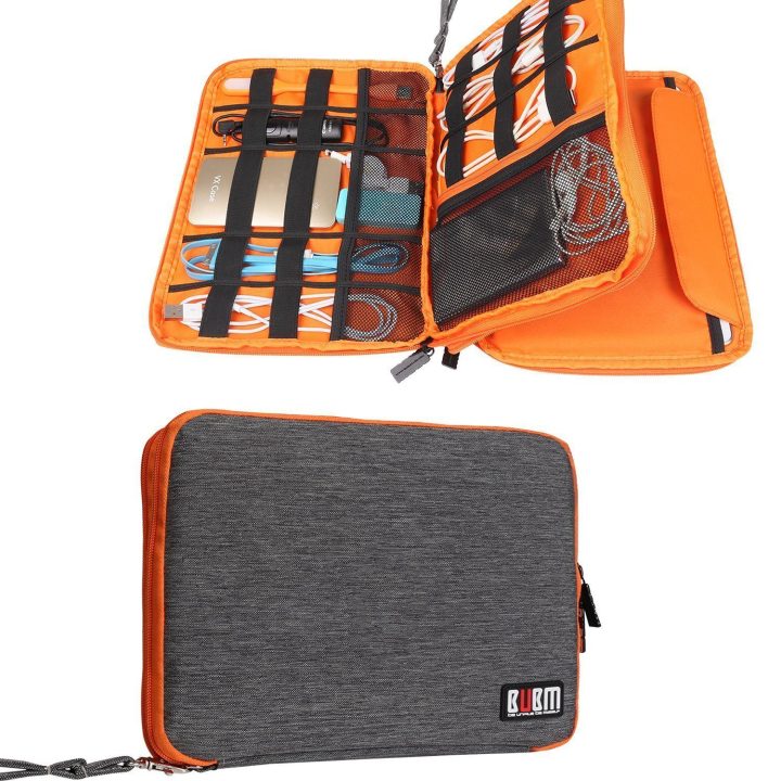 • Compact design secure various cables, power cords, charger, flash drive, memory cards, external hard drive, power bank, and other gadgets.