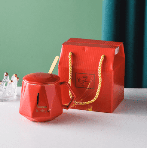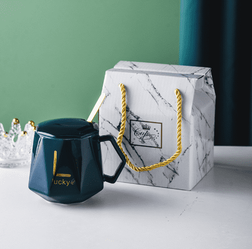 LUCKYCRYSTA Diamond Glazed Ceramic Mug Gift Set