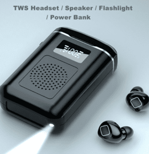 • All in one wireless stereo earphone that is a headset, speaker, flashlight and a power bank.