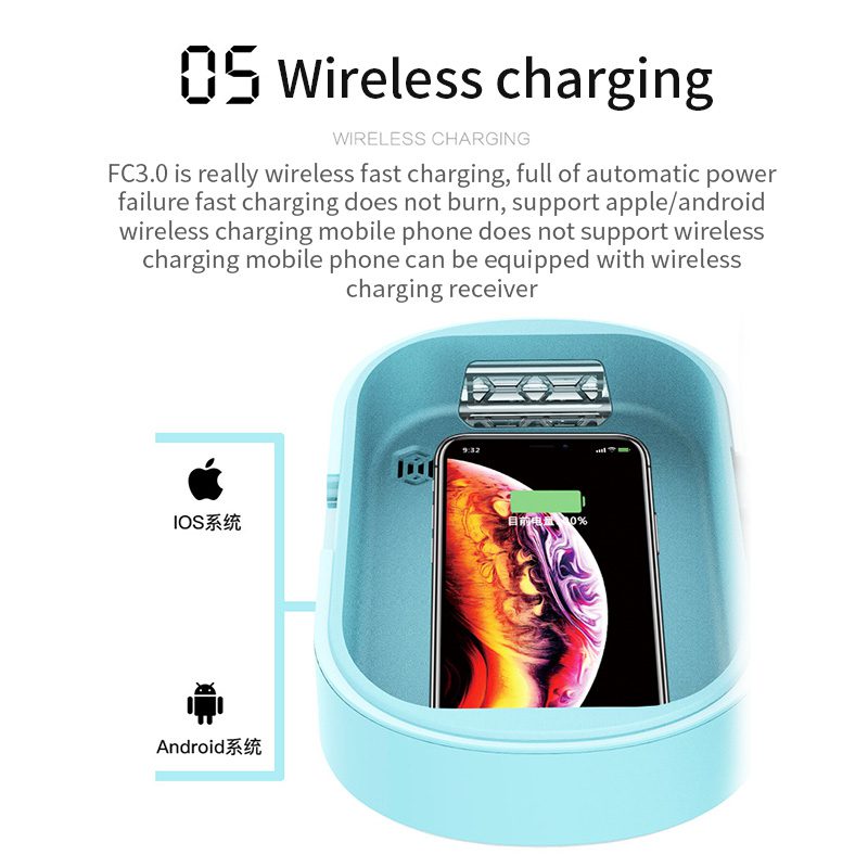 This wireless charger sanitizer allow you to charge your device and kills germs and bacteria to help prevent diseases and protect your health. - Intelligent safe disinfection: Helps avoid UV damage to the eye, once the lid opens, UV sterilization stops automatically.
