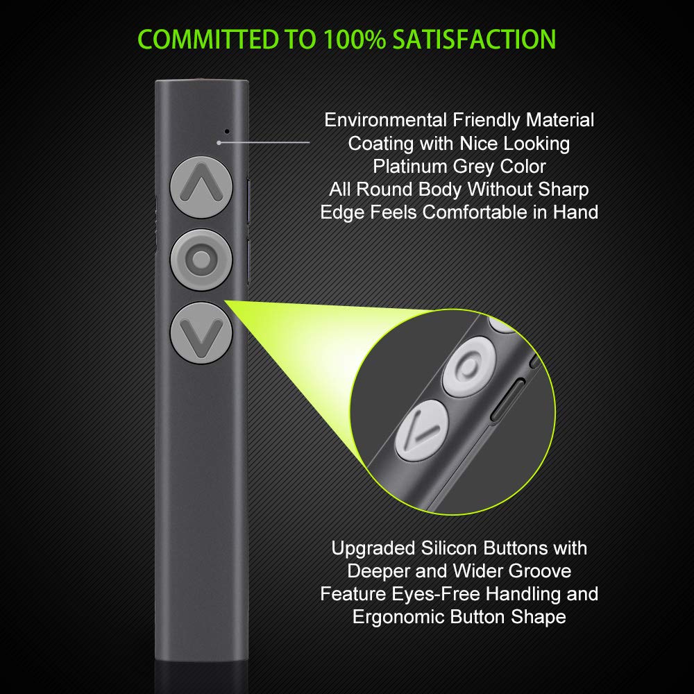 • Redesigned Silicon Buttons: Laser pointer redesigned eyes-free buttons with deeper and wider groove for touching and handling.
