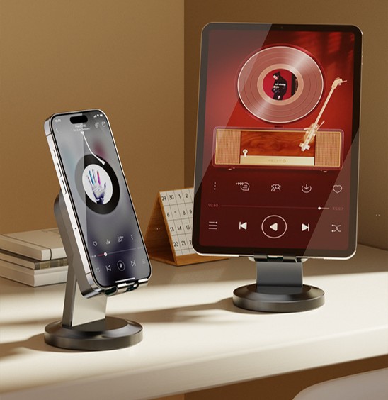 🔄 Universal Phone & Tablet Stand: Wide cradle design supports devices in portrait or landscape mode for movies, calls, and music.