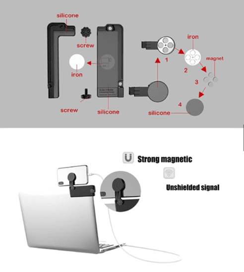 - The clamp and the contact surface with phone are padded with silicone material, which can protect your phone and laptop from scratching and damage.