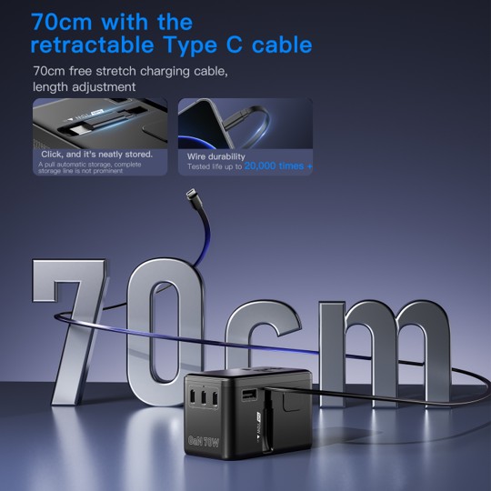 Cable: 70cm retractable Type-C cable — tested over 20,000 pulls 🔄