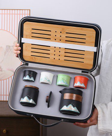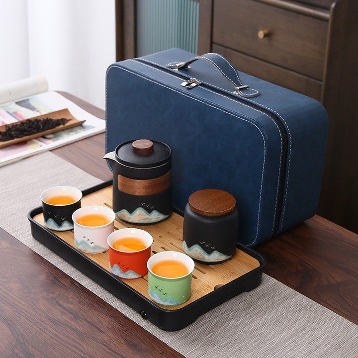 premium ceramic tea leather gift set bag