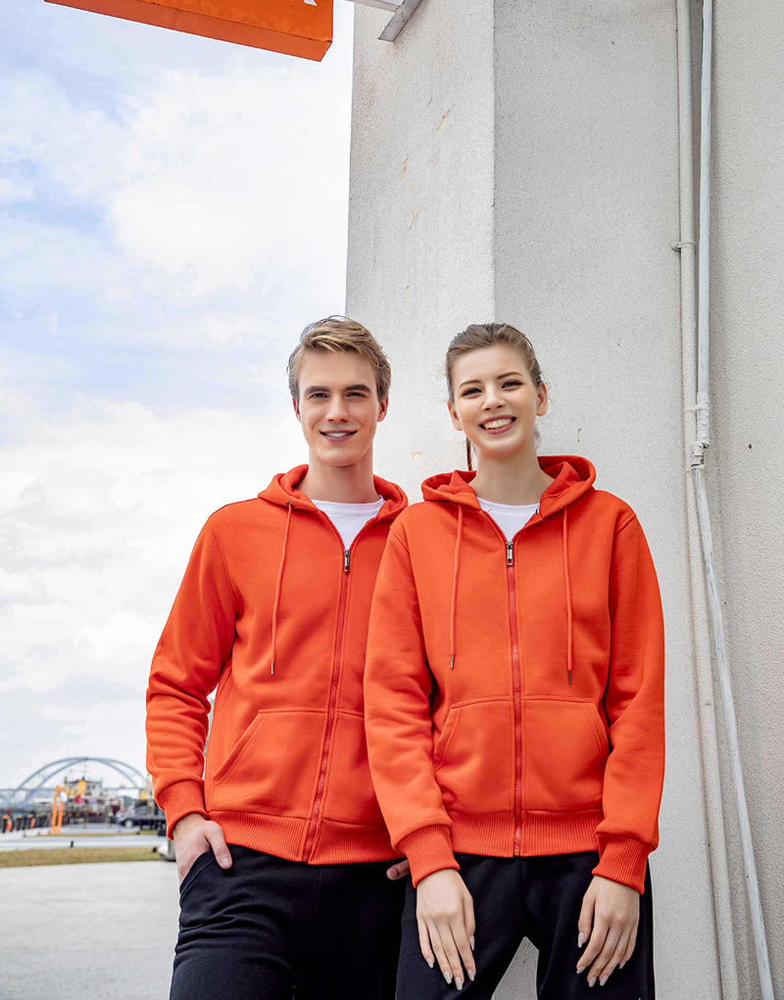 Double-layer hoodie with metal eyelets & reinforced drawstrings
