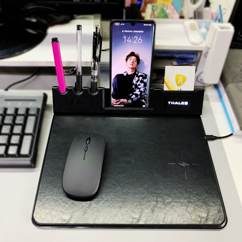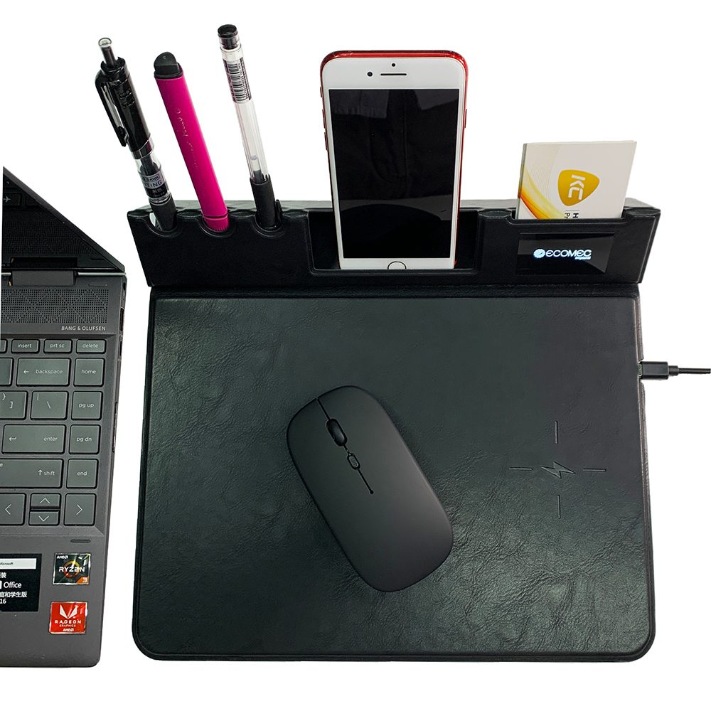 • Multifunctional: Hold your pens, phone, business card and use it as a mousepad while charging your phone