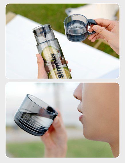 • Long to infuse your favourite fruits inside your drink while exercising? This bottle allows you to stick on your favourite fruits and infuse it with your beverage! The cup allows you to drink it for easier access while you are on an outdoor adventure!
