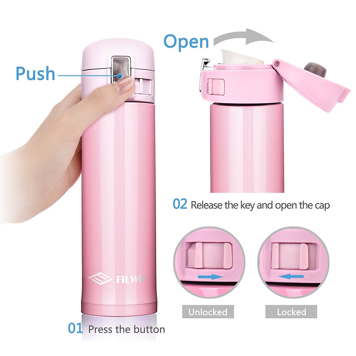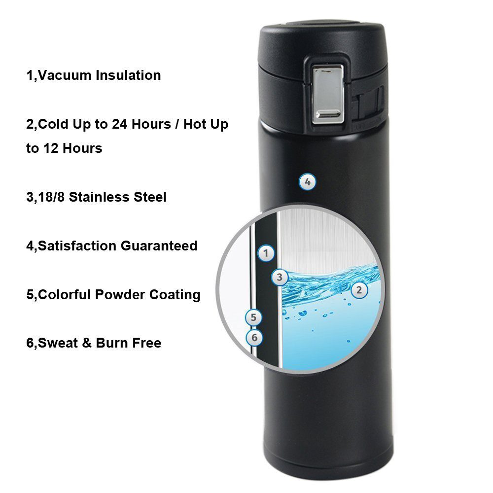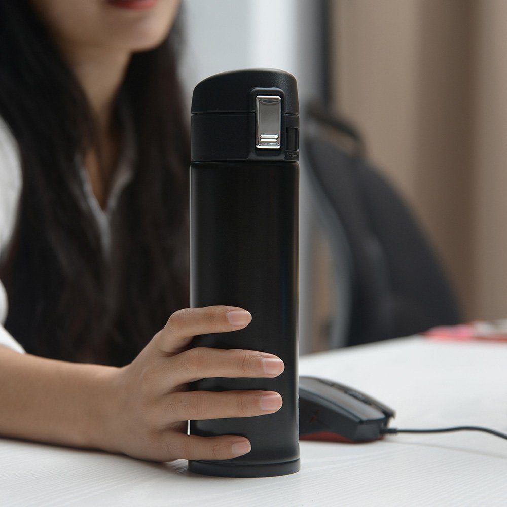 • It uses a 1 touch easy soing button that opens up the flask easily for you to drink.