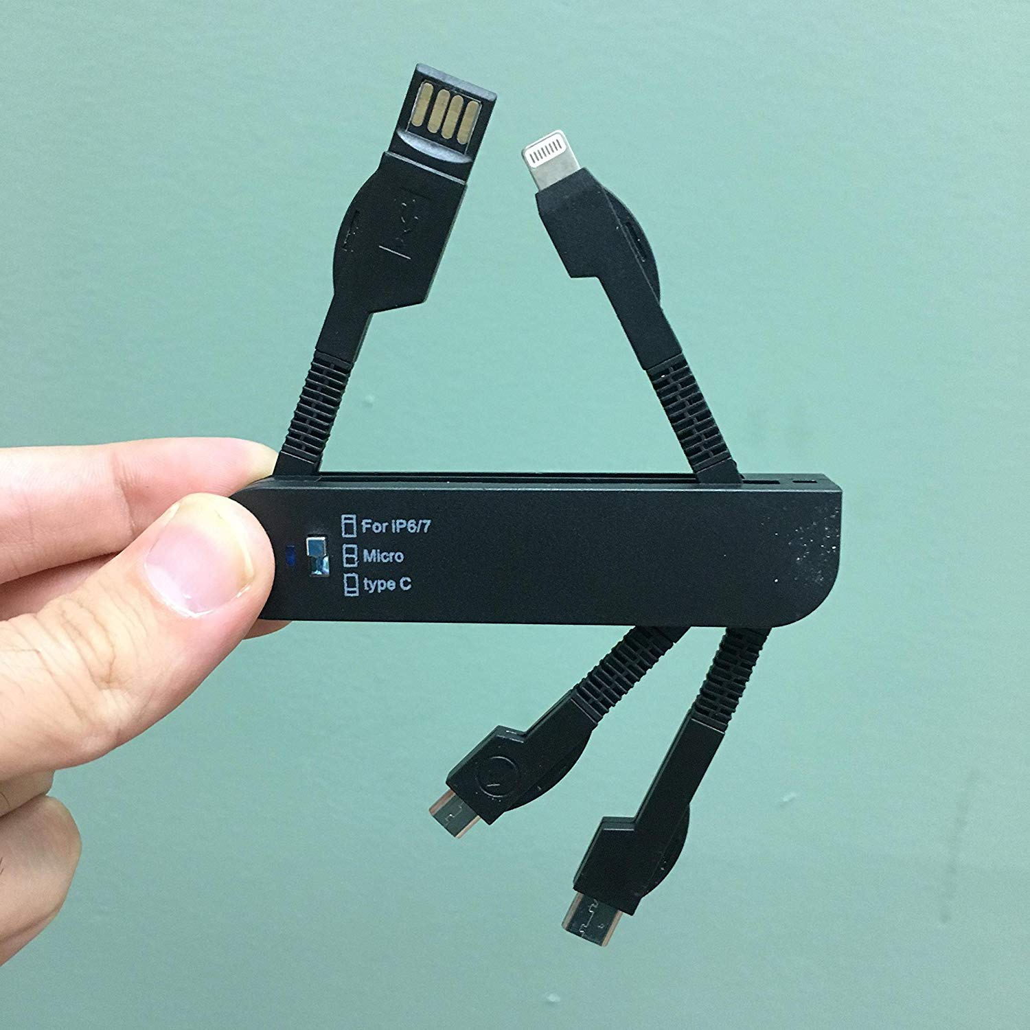 - A clean & compact outlook charging cable that operates like a swivel knife design.