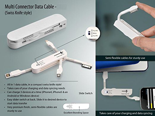 - Synopsis:2-In-1 Retractable Charging Cable that is designed to cater to your convenience. Compatible to iPhone 4, iPhone (5 and beyond), and Android, this cable allows you to alternate between your devices to charge or to sync your devices on the go. It is designed to be kept neatly by swiveling back into a Swiss Knife shape.