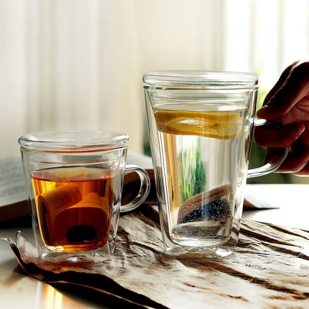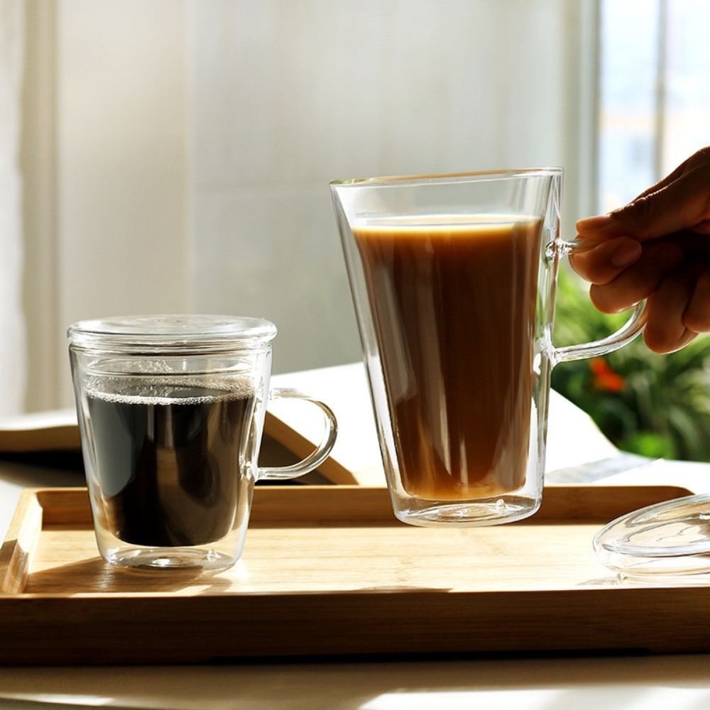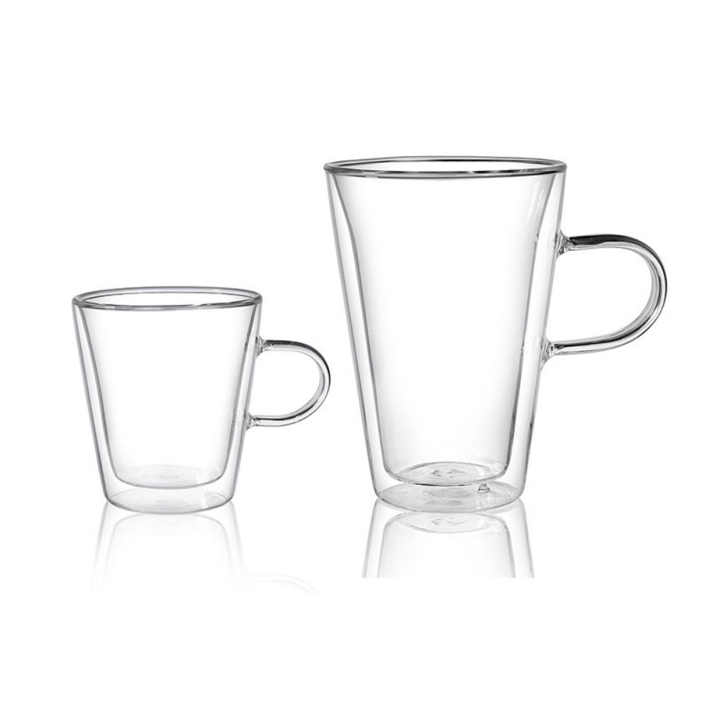 tall double wall glass mug with handle