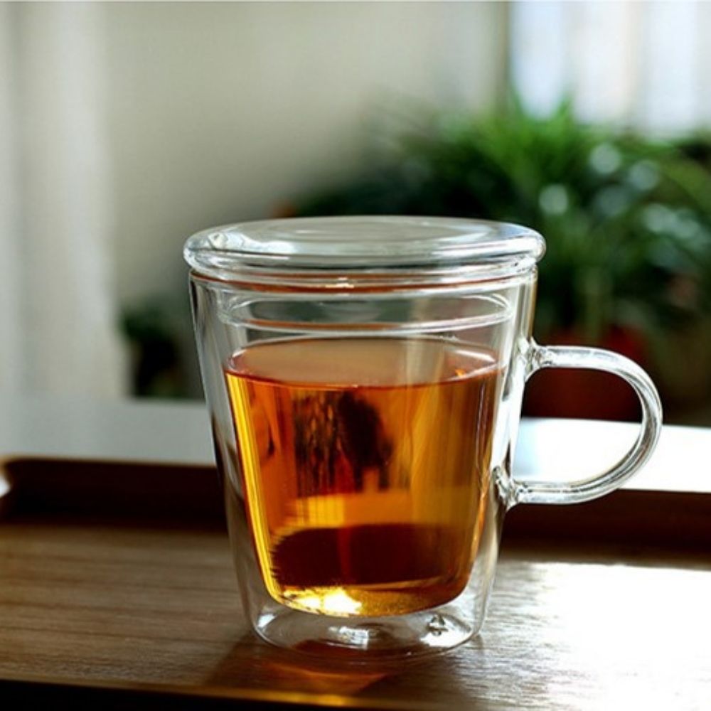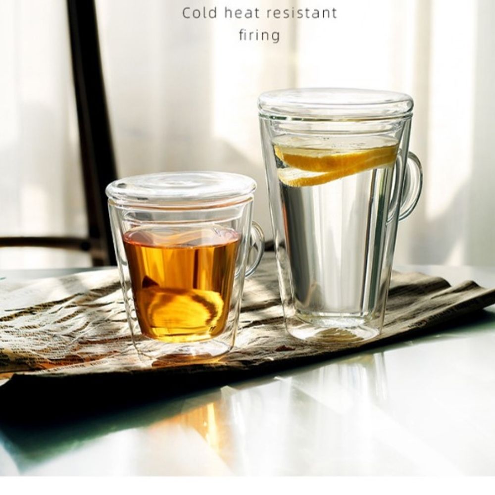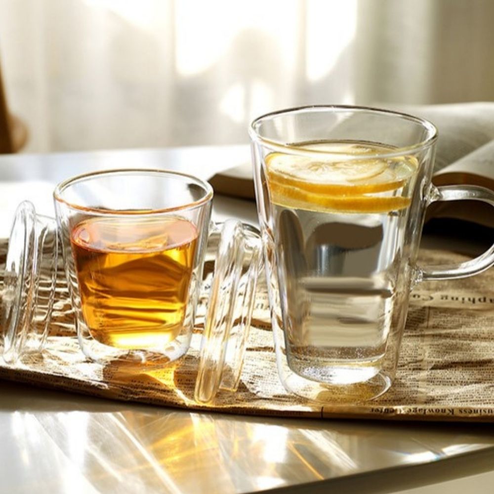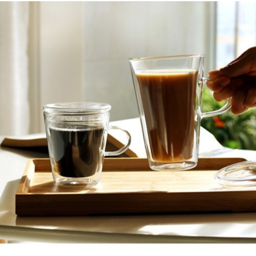 tall double wall glass mug with handle